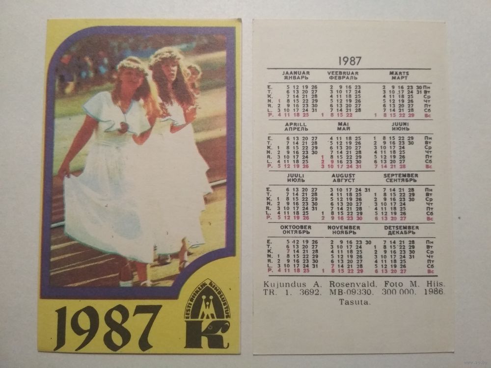 Карманный календарик. Страхование . 1987 год