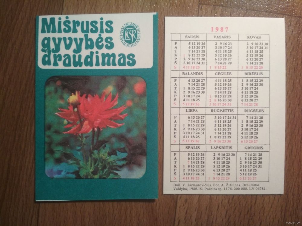 Карманный календарик.Страхование.1987 год