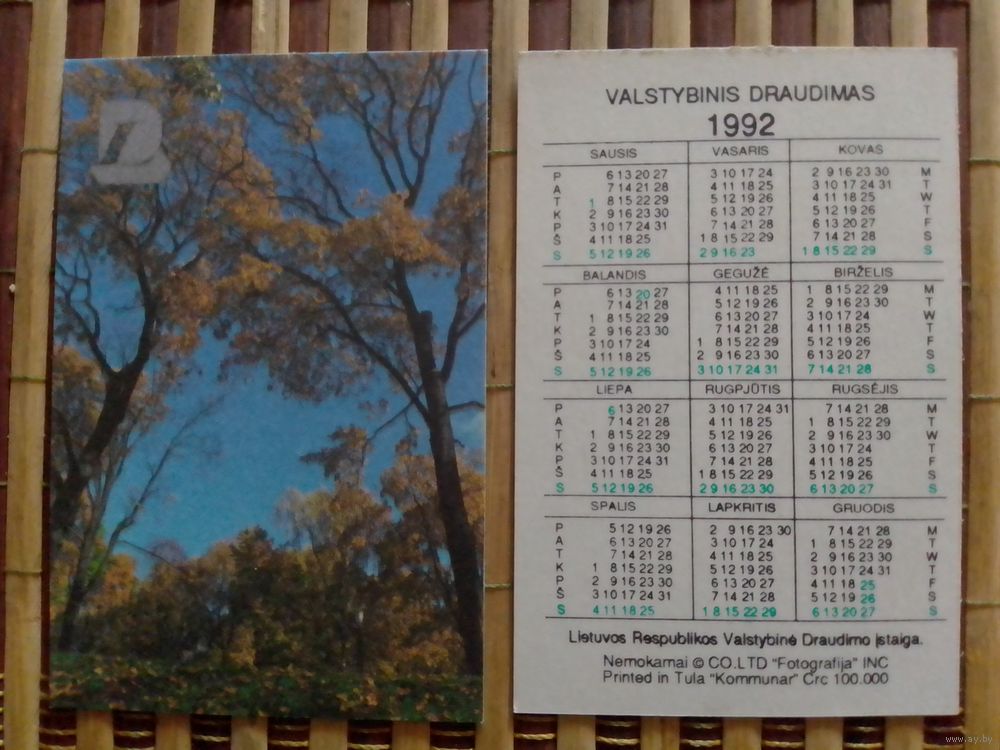 Карманный календарик.Страхование.1992 год