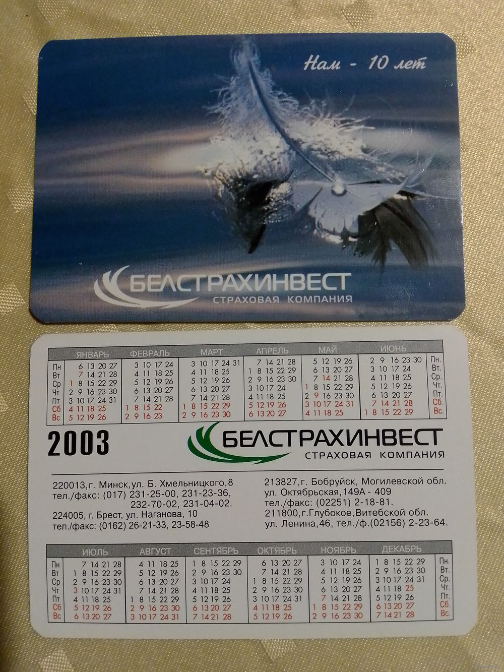 Карманный календарик.Страхование.2003 год