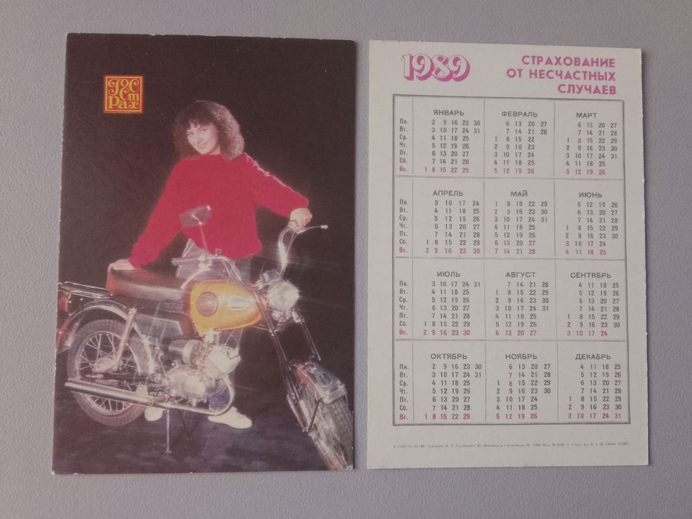 Карманный календарик. Страхование. Мотоцикл. 1989 год
