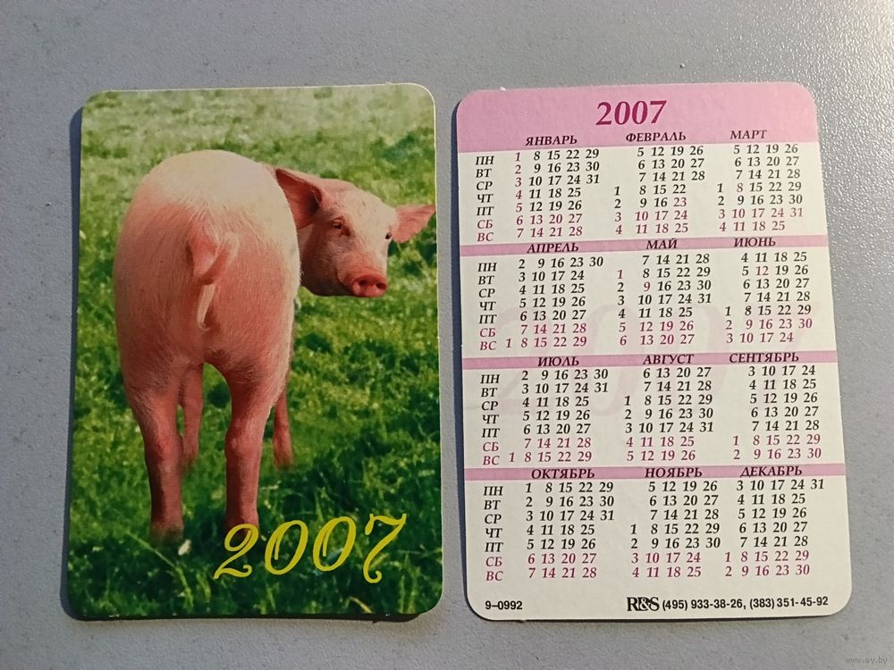 Карманный календарик. Свинья. 2007 год