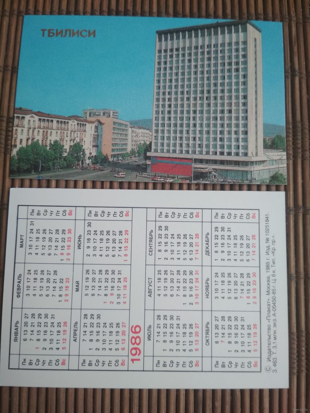 Карманный календарик. Тбилиси .1986 год