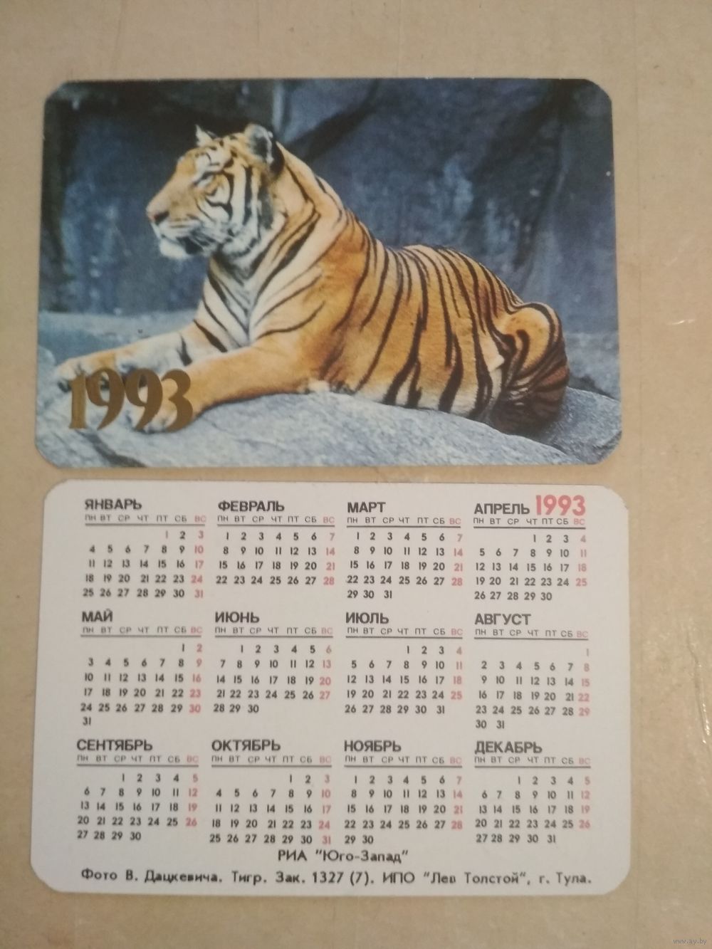 Карманный календарик. Тигр.1993 год