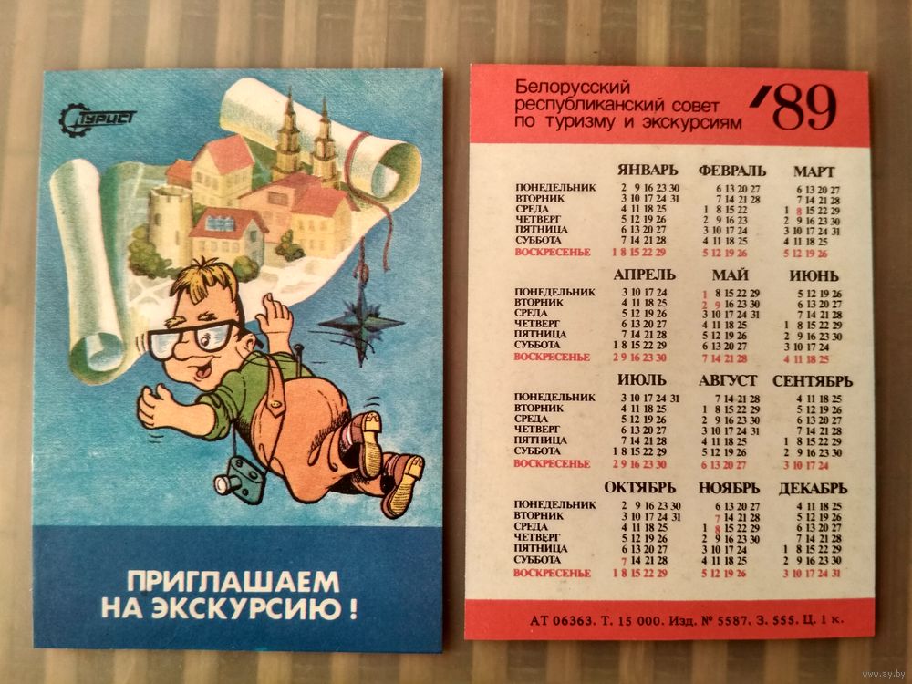 Карманный календарик. Турист . 1989 год