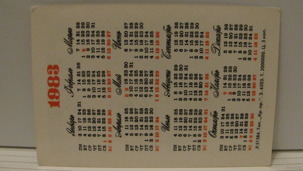 Карманный календарик. Василиса Прекрасная. 1983 год
