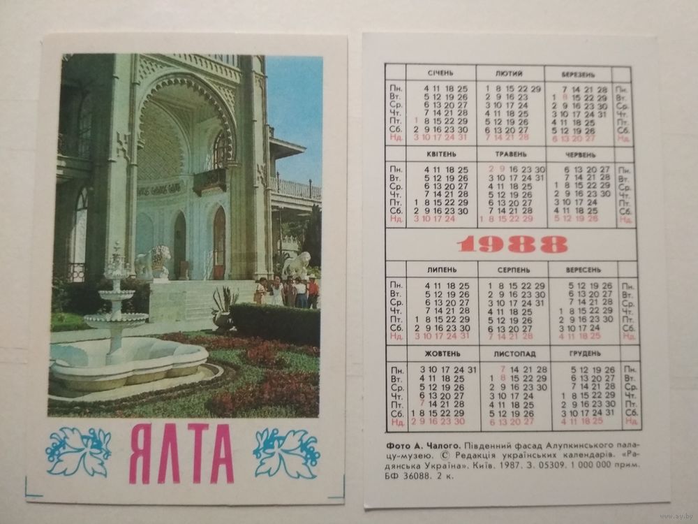 Карманный календарик. Ялта. 1988 год