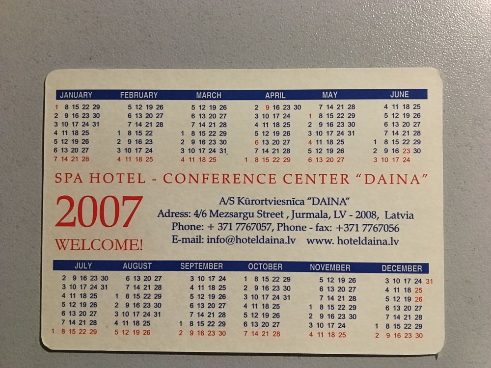 Карманный календарик. Юрмала. 2007 год