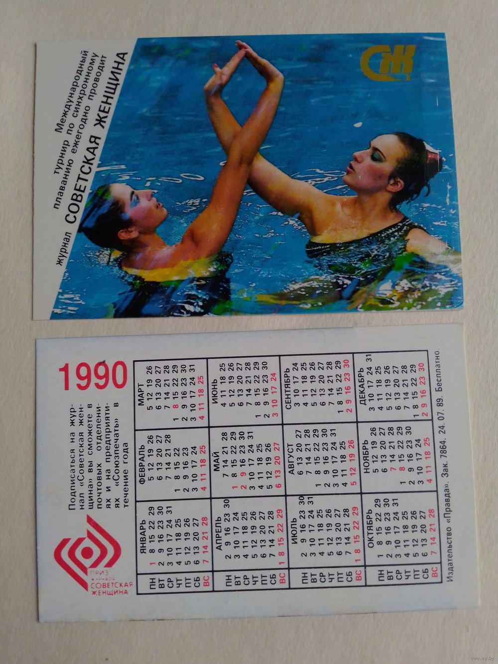 Карманный календарик. Журнал Советская женщина. 1990 год