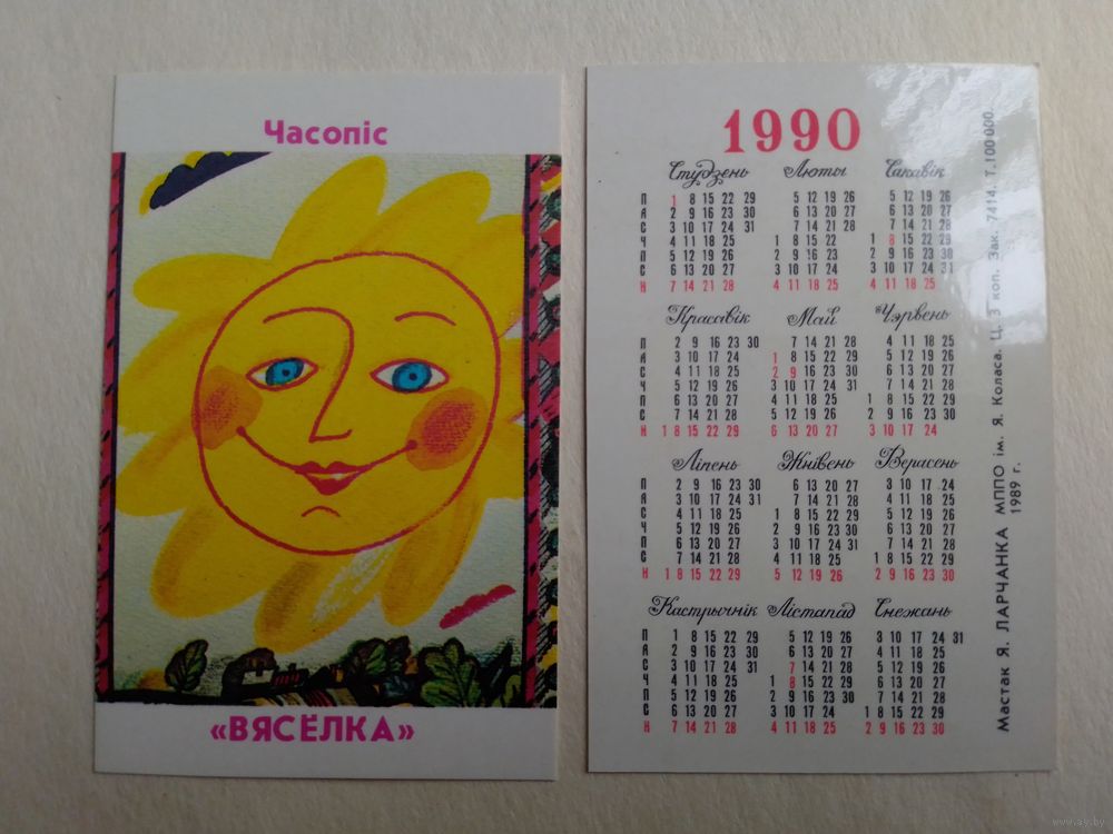 Карманный календарик. Журнал Весёлка. 1990 год