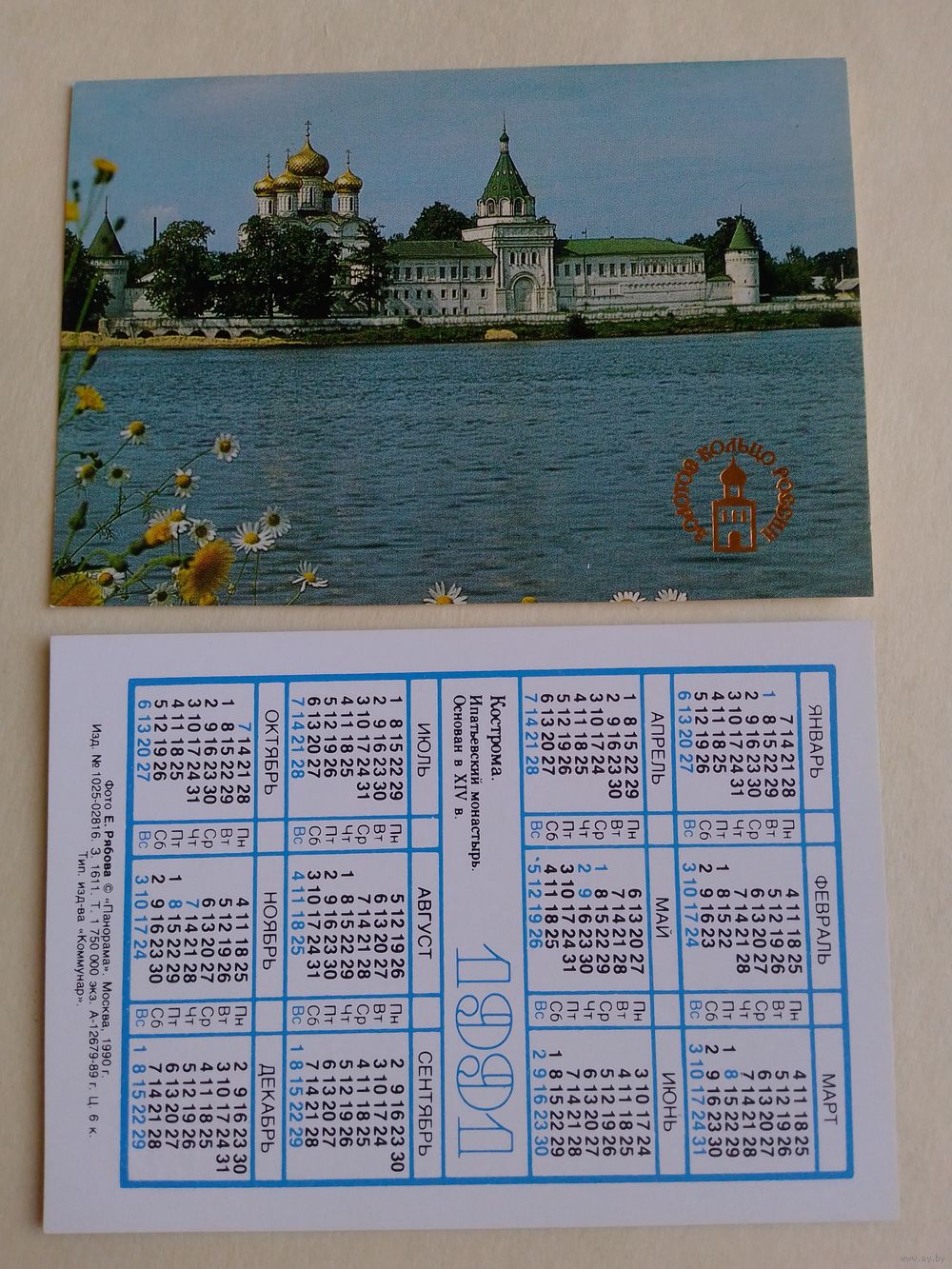 Карманный календарик. Золотое кольцо России. 1991 год.
