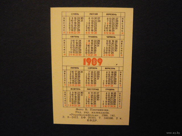 Карманые календарики. АКТЕРЫ. 1989. МАРИАННА ВЕРТИНСЬКА