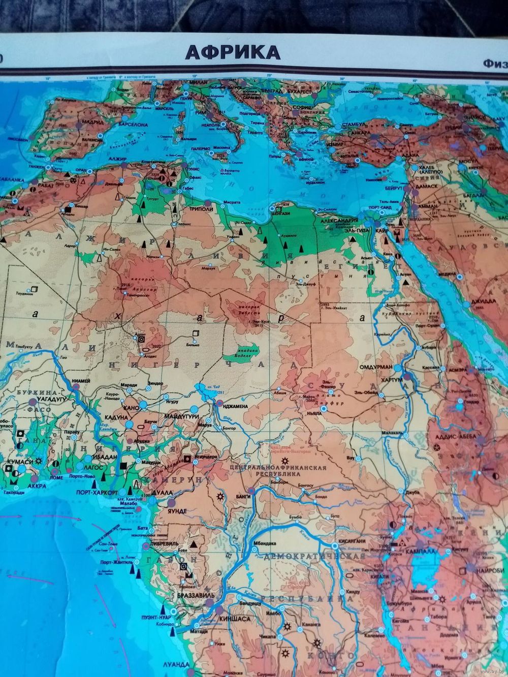 Карта Африка 2007 г физическая ламинированная