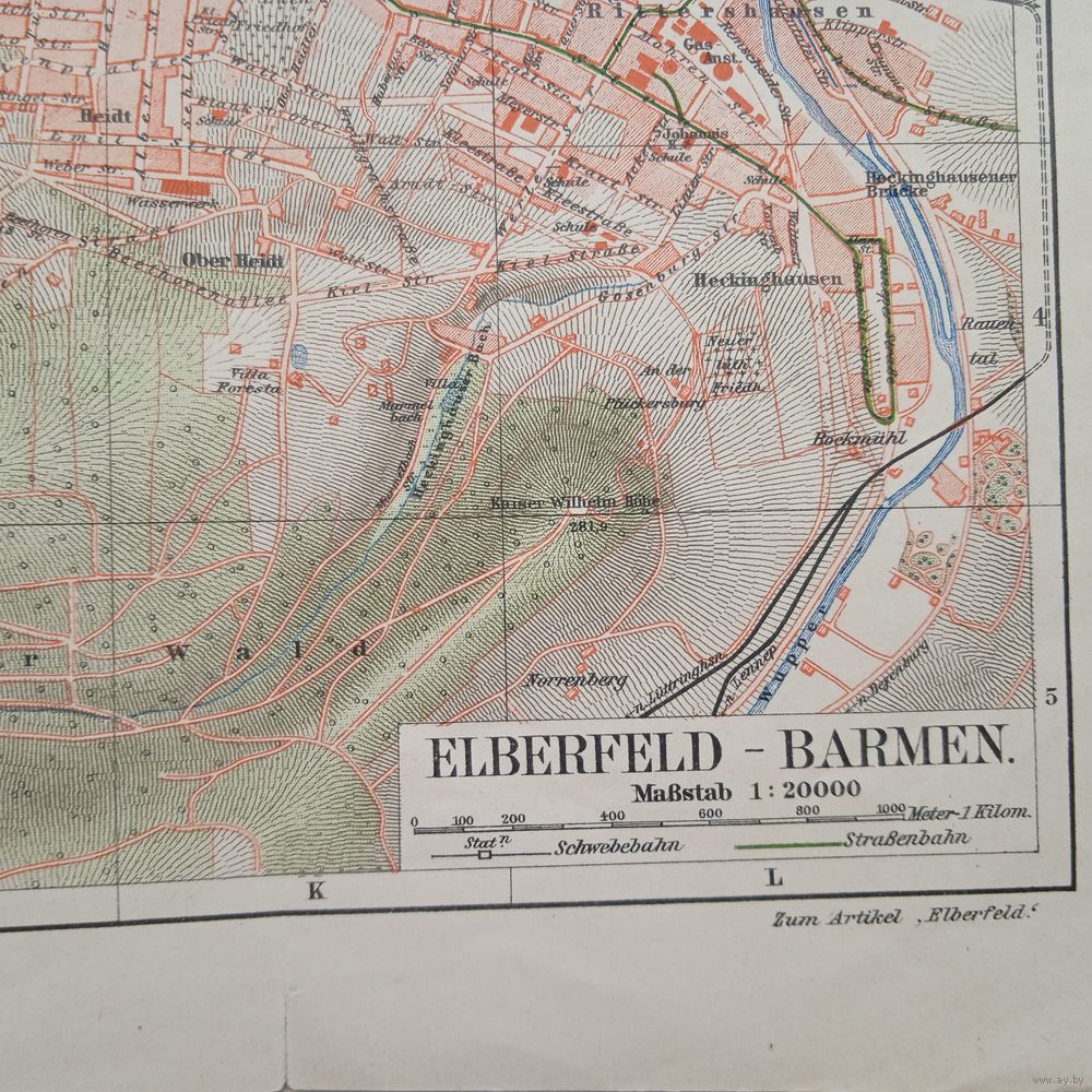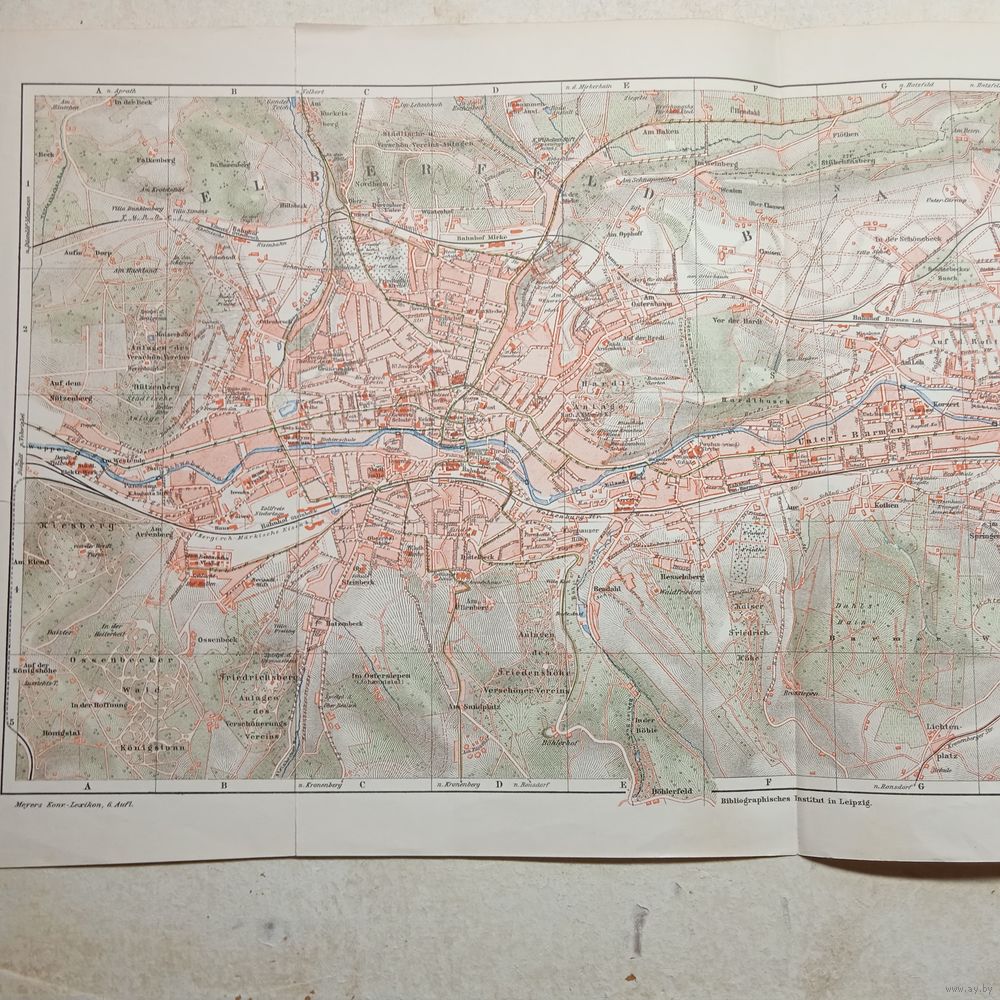 Карта ELBEREFELD-BARMEN. Литография Германия. Гравюра середина 19века 57x24см. РАСПРОДАЖА КОЛЛЕКЦИИ.