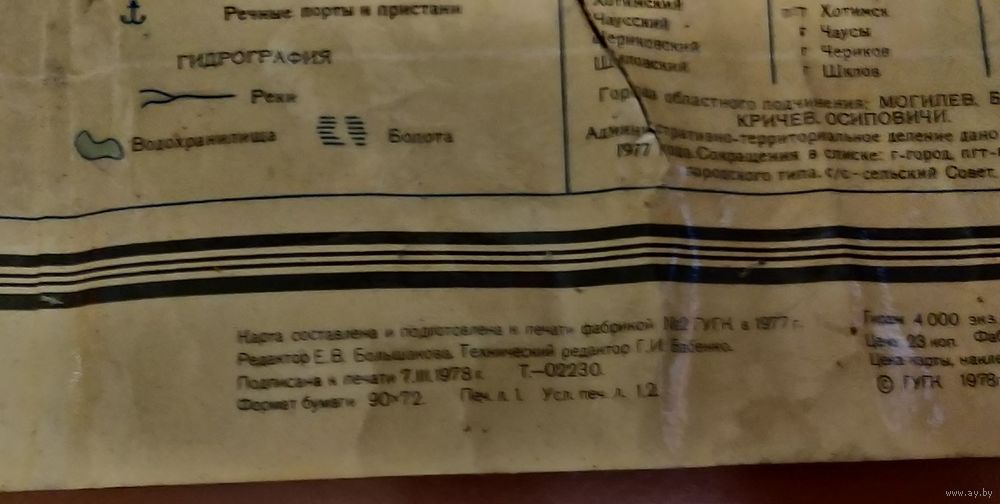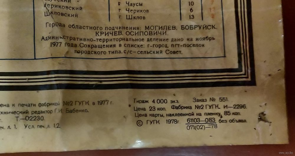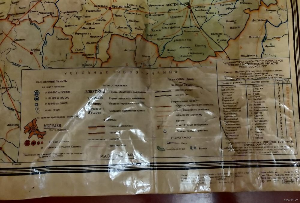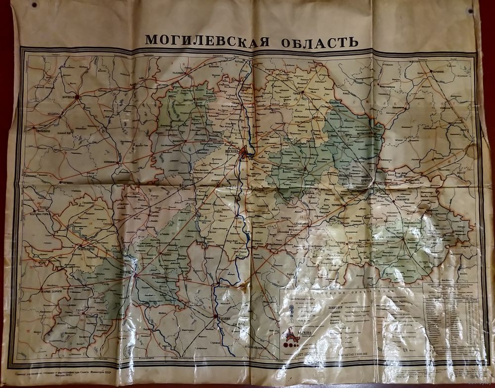Карта Могилевской области периода СССР 1978 года на люверсах.