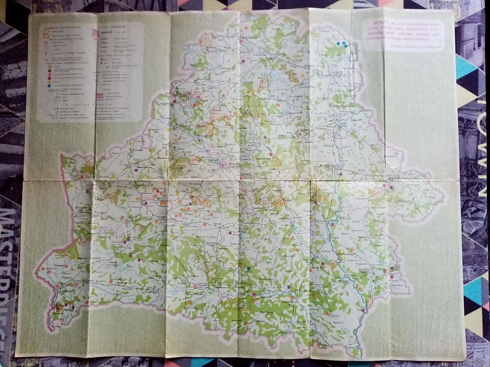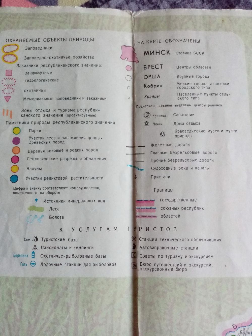 Карта Охраняемые объекты природы БССР 1973 г Туристская схема
