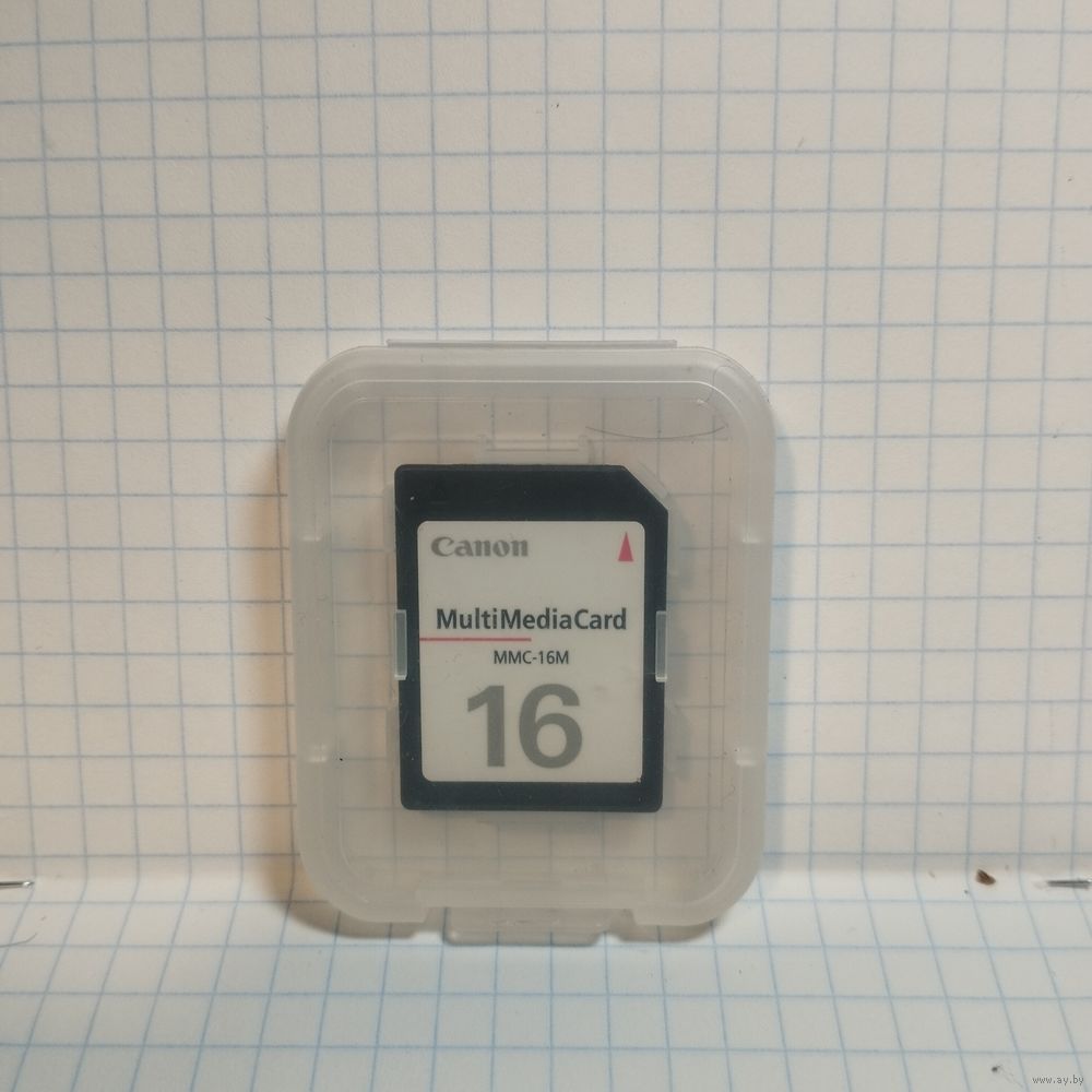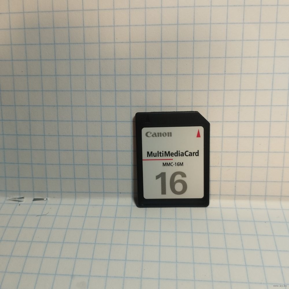 карта памяти Canon MultiMediaCard (MMC) на 16 МБ.Формат: MultiMediaCard (MMC), разработанный SanDisk, Siemens и Nokia в 1996 году. Емкость: 16 мегабайт (МБ). Назначение: Используется в качестве носителя данных для портативных устройств, таких как цифровые камеры и мобильные телефоны.