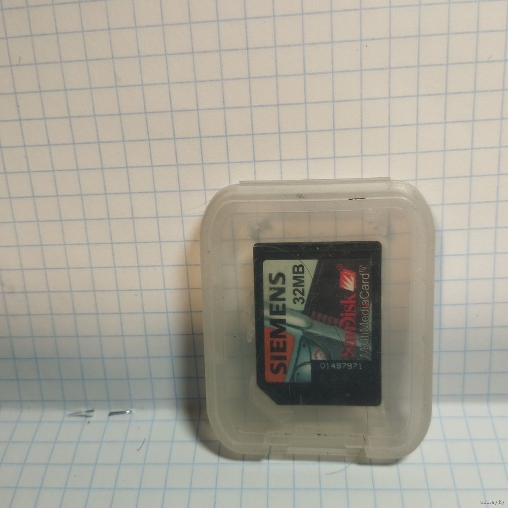 карта памяти Siemens MultiMediaCard (MMC) на 32 МБ. Назначение: Используется для хранения цифровых данных в различных электронных устройствах, таких как цифровые камеры, мобильные телефоны и MP3-плееры. Разработка: Стандарт MMC был разработан компаниями SanDisk и Siemens AG