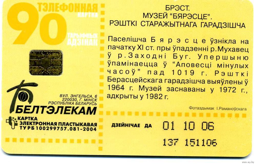 Карта телефонная Беларусь 20061