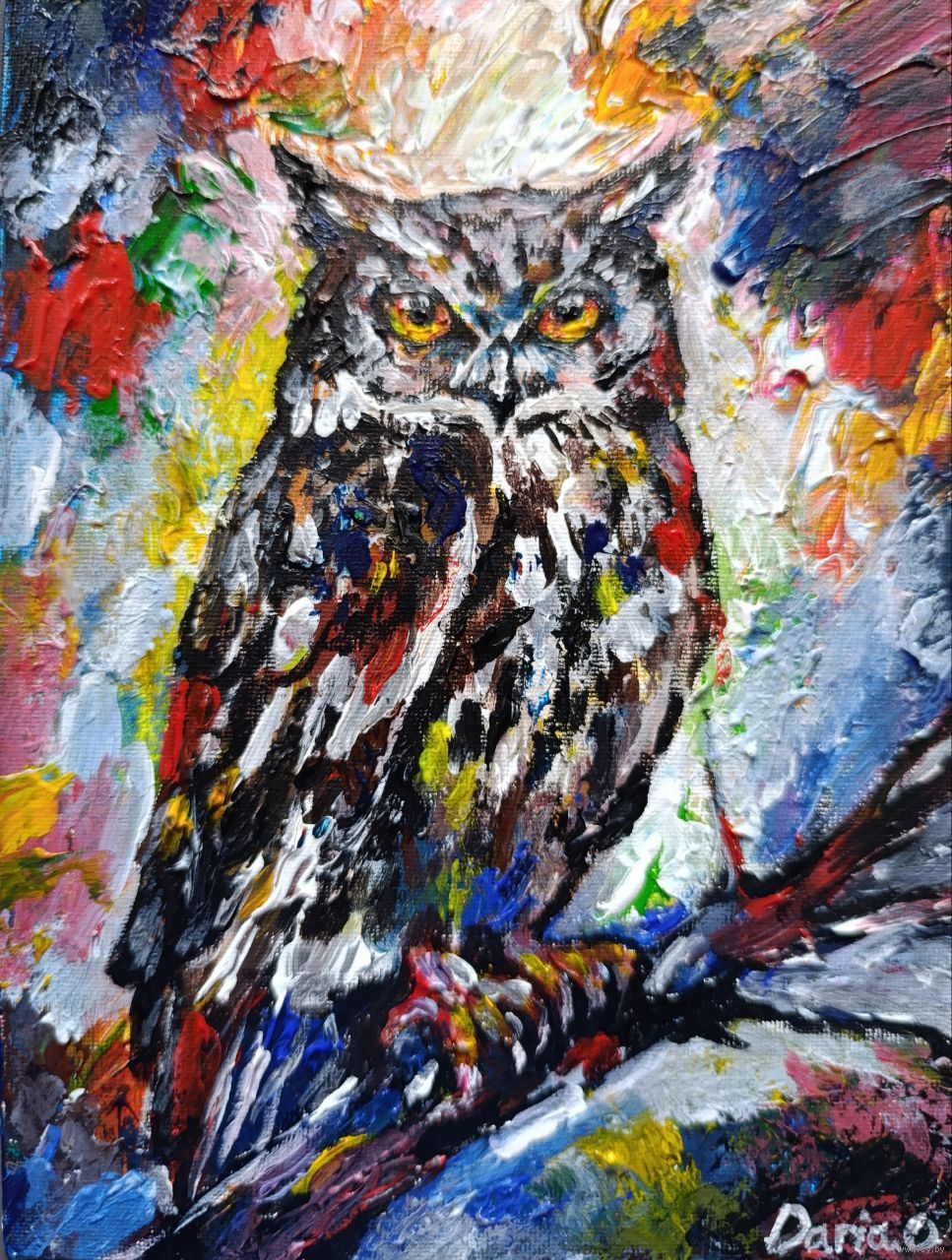 Сова. Акрил, холст на картоне 24x18, ручная работа