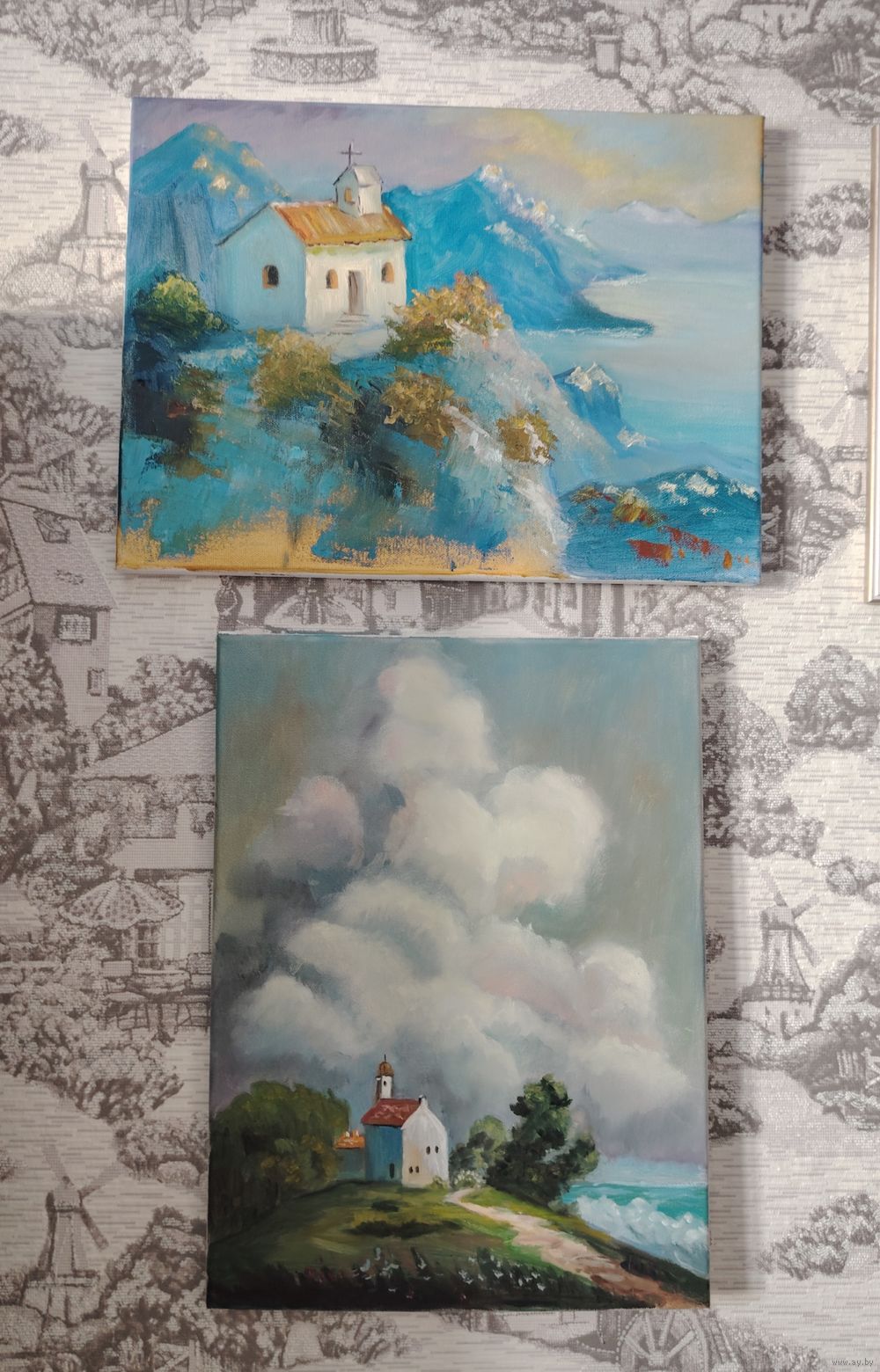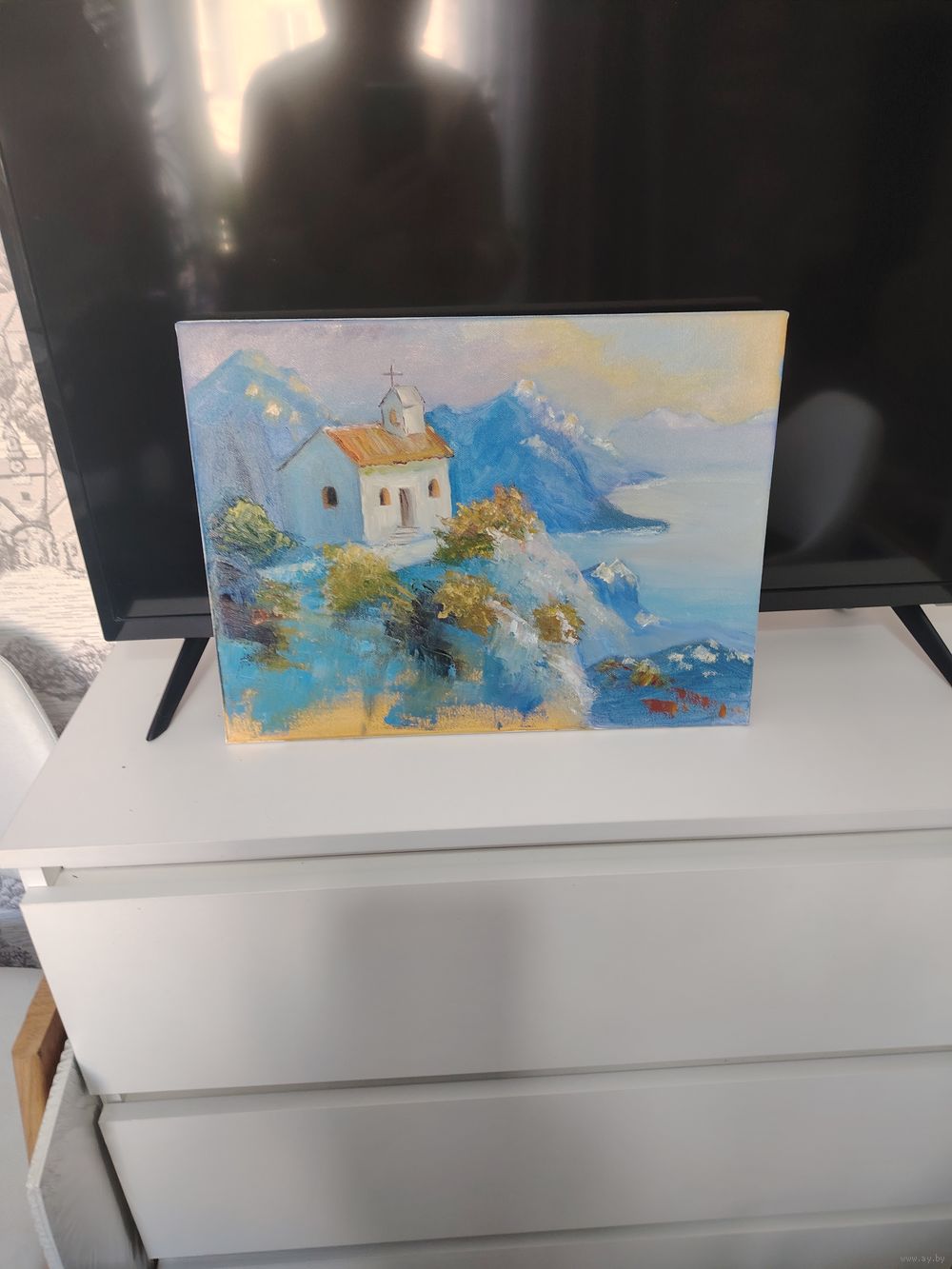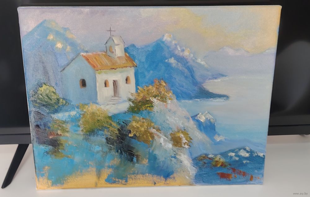 Картина "Часовня на горе", холст на подрамнике, р-р 40-30, масло, цена 80р.