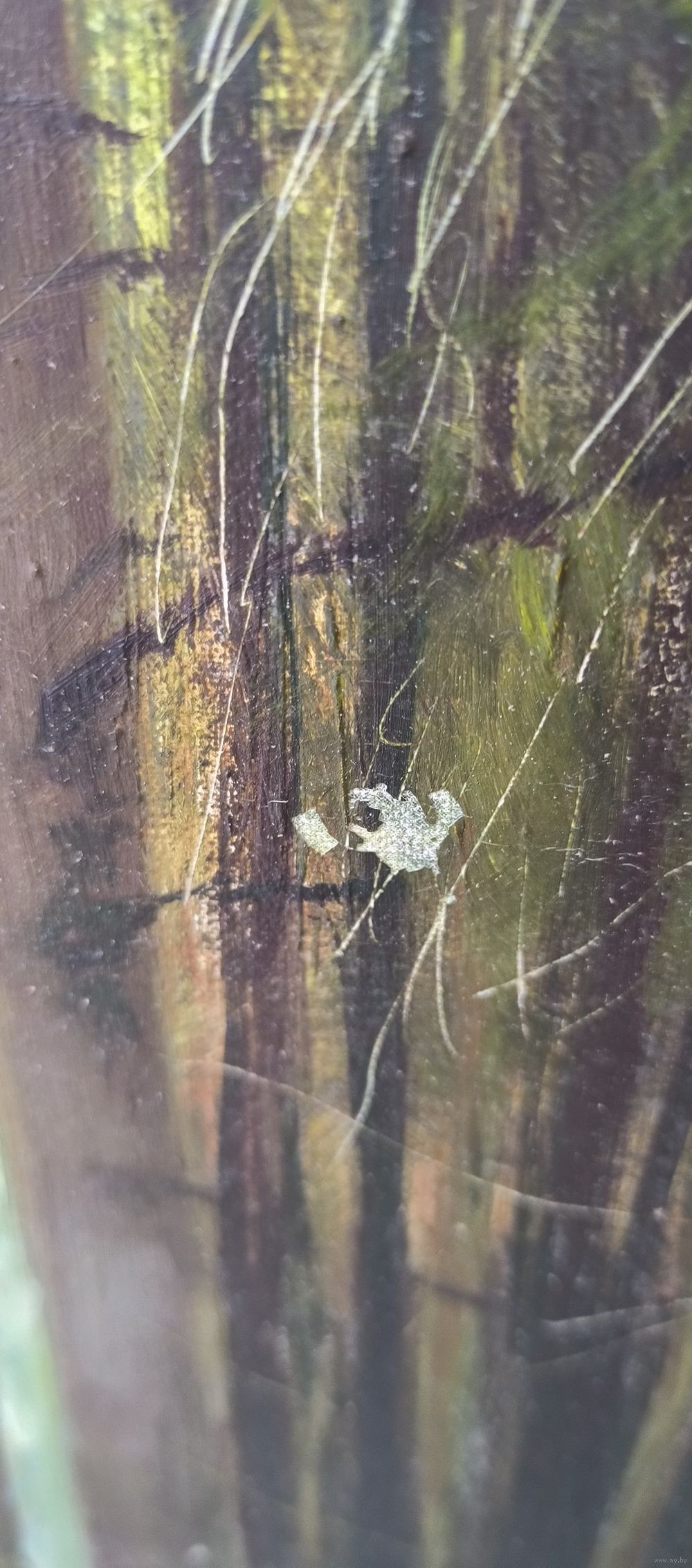 Картина имеет дефекты. Прошу внимательно отнестись к покупке. Вроде как это холст масло. НО я не эксперт. По фото видно что вроде как краска отслоилась. Но является ли данная краска маслом утверждать не могу. Претензии на данный счёт приниматься не будут. С уважением.