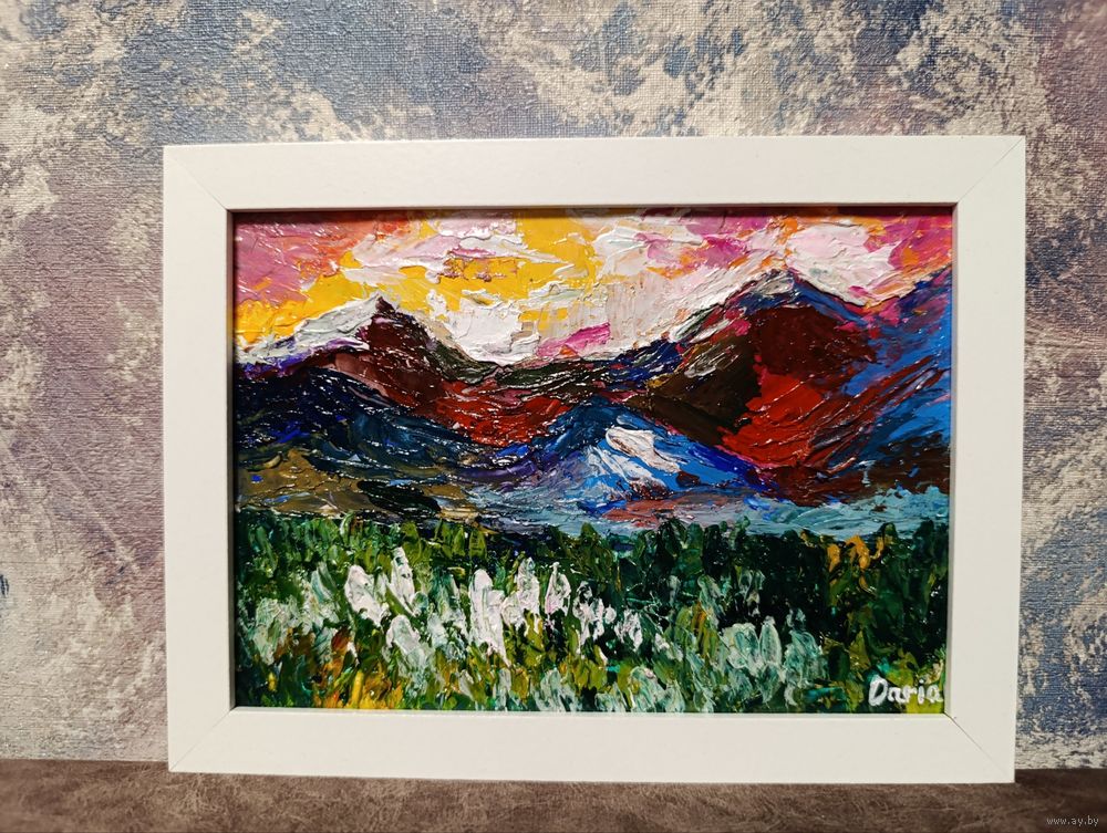 Внутри картина 15x21, плотный картон, акрил. Деревянная рамка без стекла