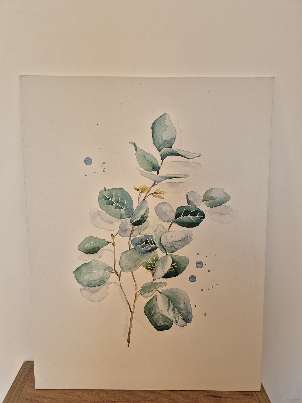 Картина акварель, 30х40см, холс на картоне, "Эвкалипт"