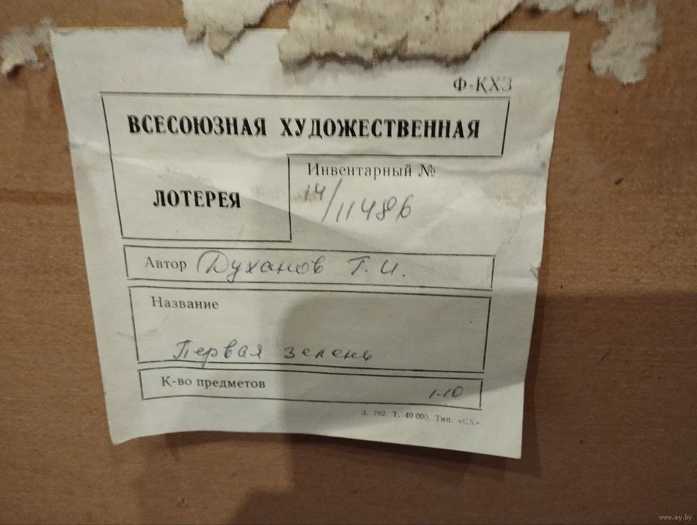 Картина Духанова Г.И. (Союз художников РСФСР) "Первая зелень" из розыгрыша Государственной лотереи СССР.