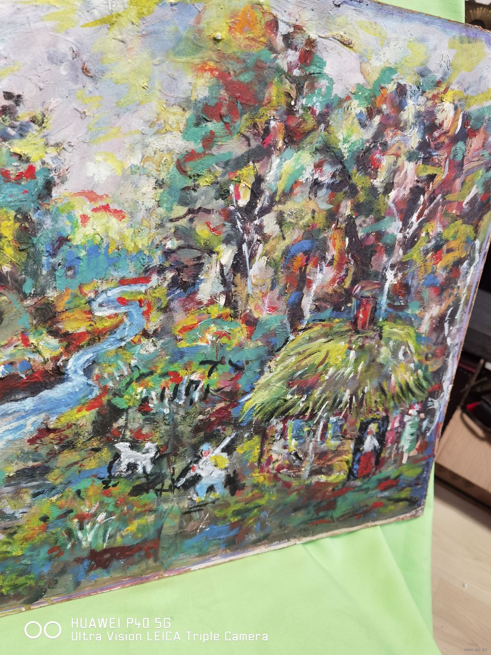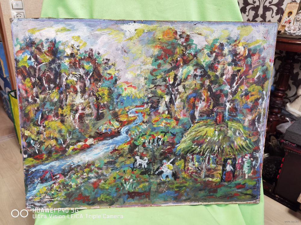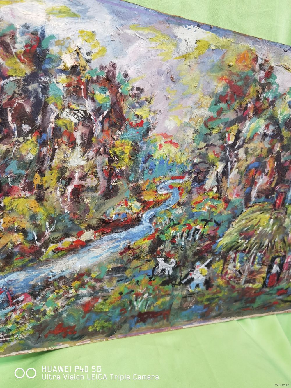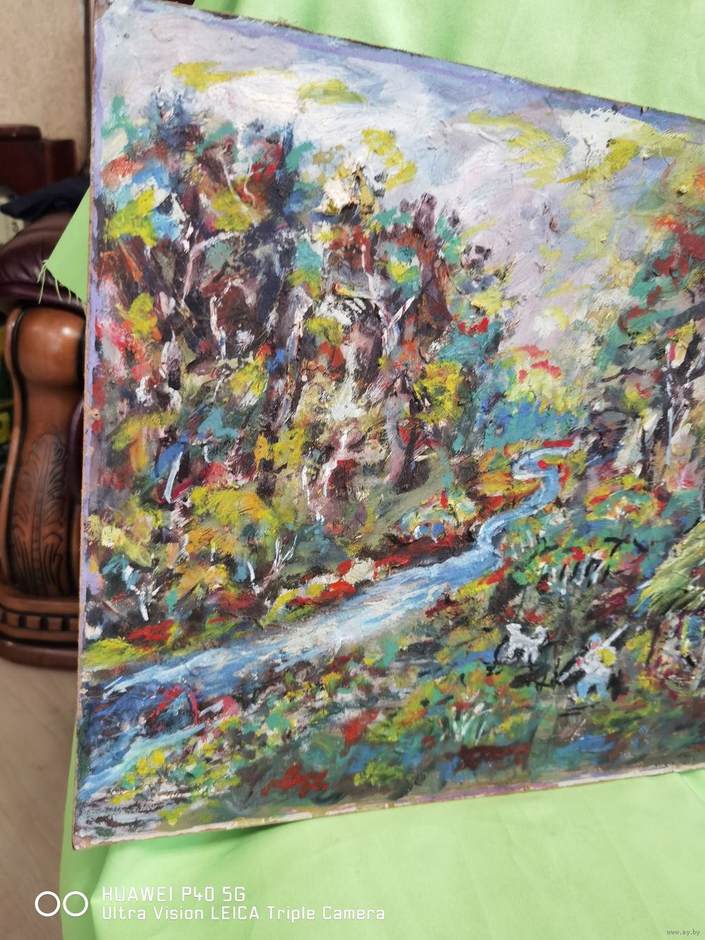 Картина два масло Лесная река художник К. Сайфугалиев 1987 год самая привлекательная цена трёхдневный аукцион