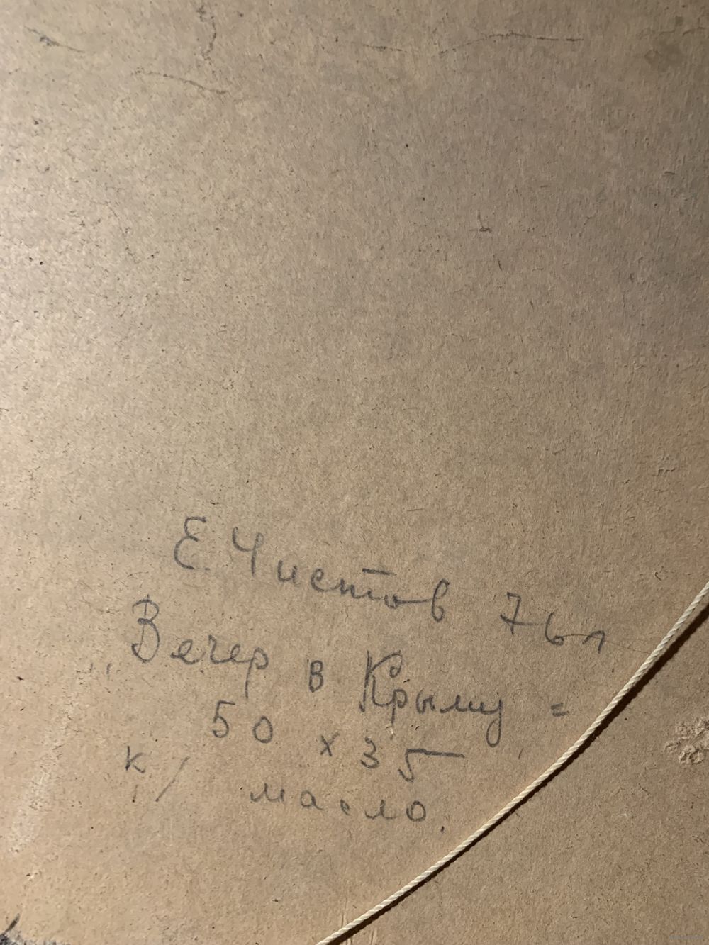 Картина маслом Е. Чистова 1976г. Состояние на фото, в некоторых местах масло откололось.