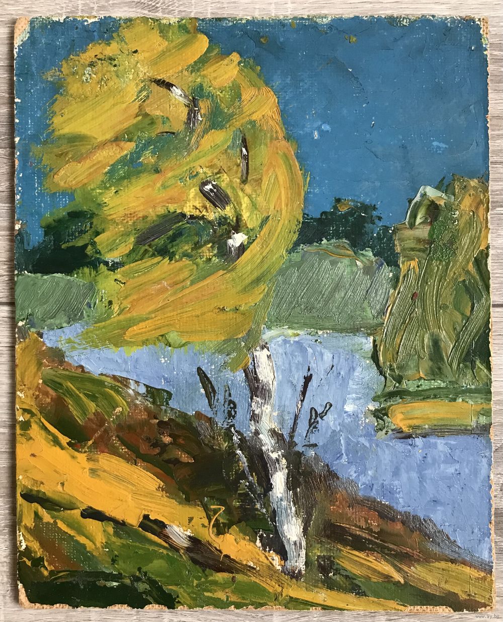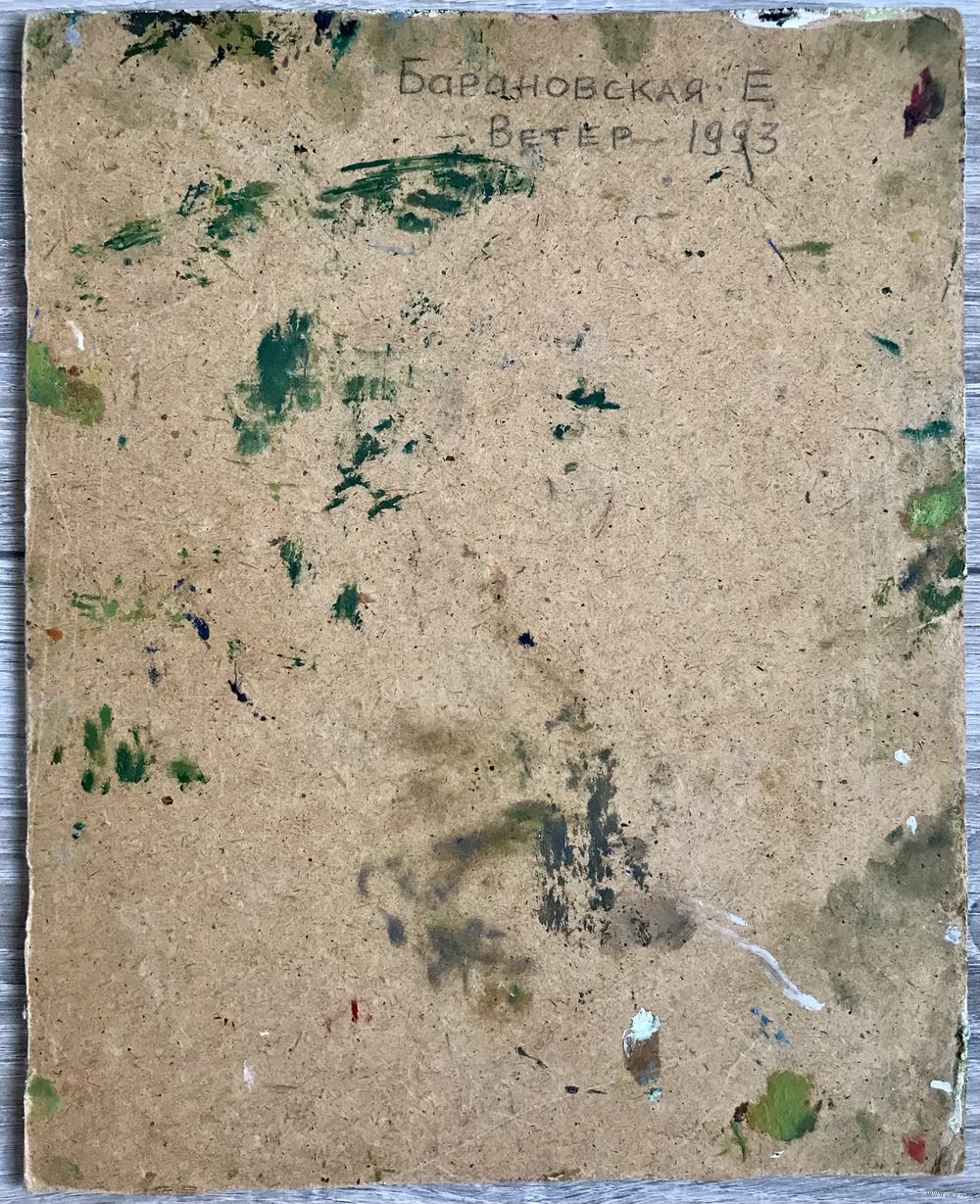 Картина (этюд) «Ветер» белорусской художницы, члена БСХ Елены Барановской. Оргалит, масло,1993г., 30х24см.