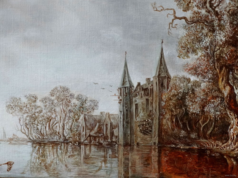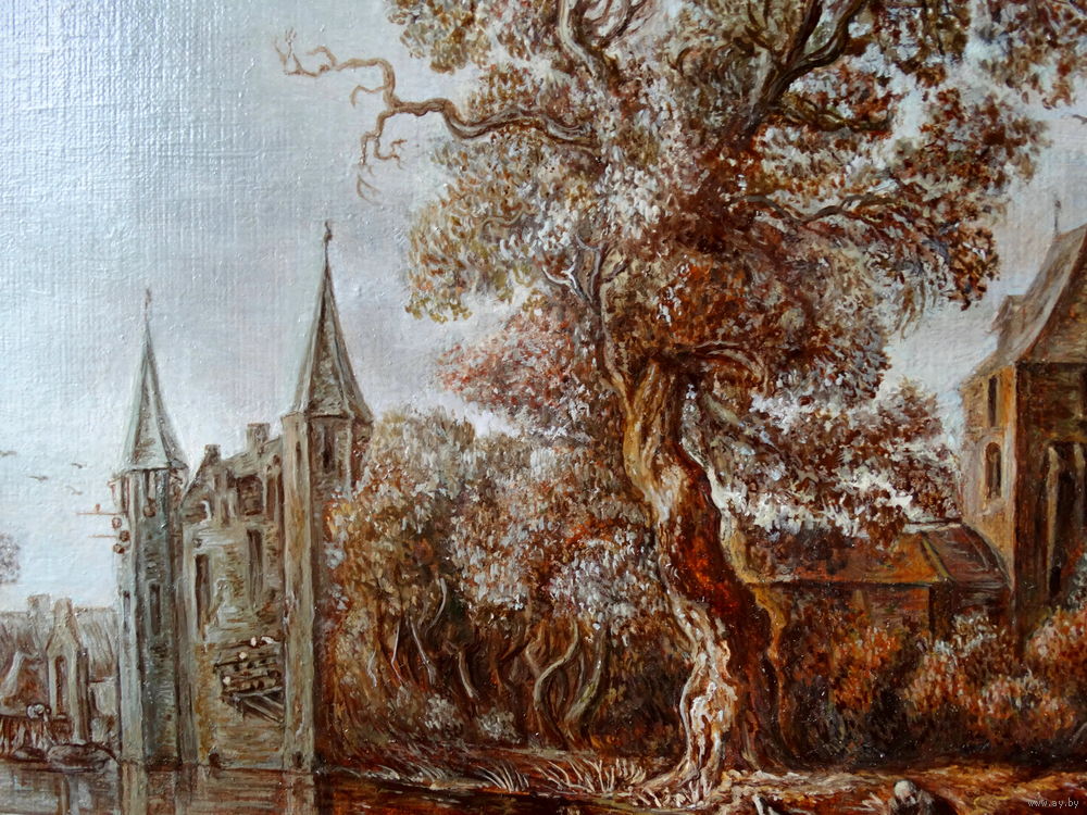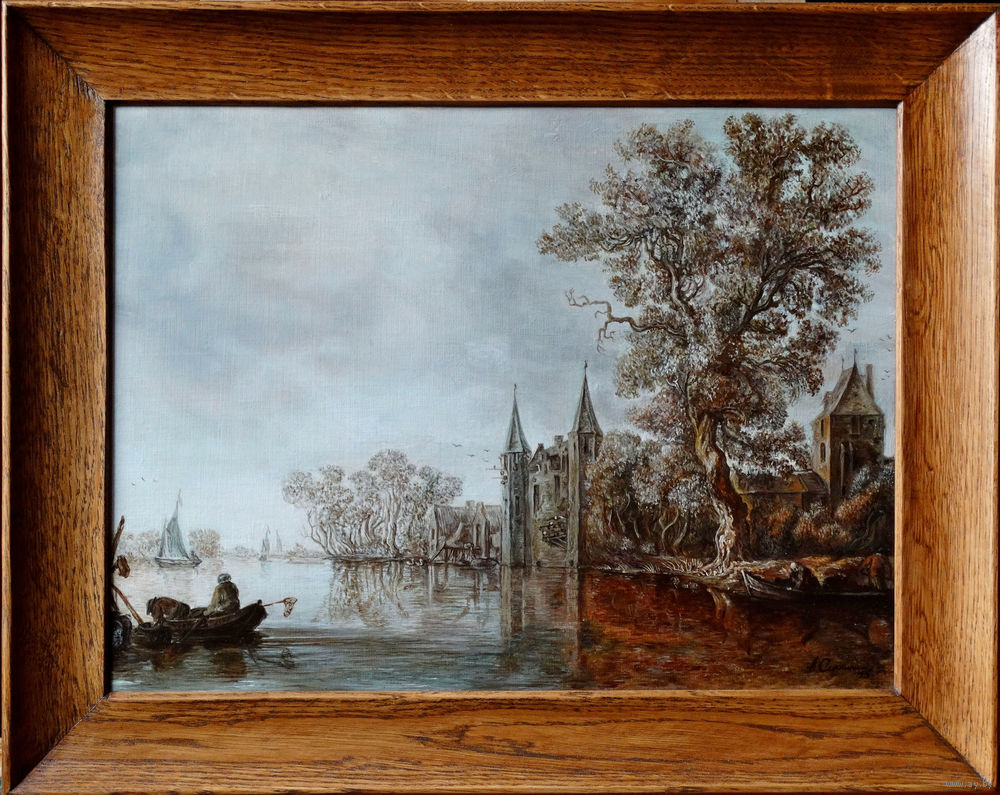 Копия картины голландского художника 17в. Яна ван Гойена. Дубовая рама.