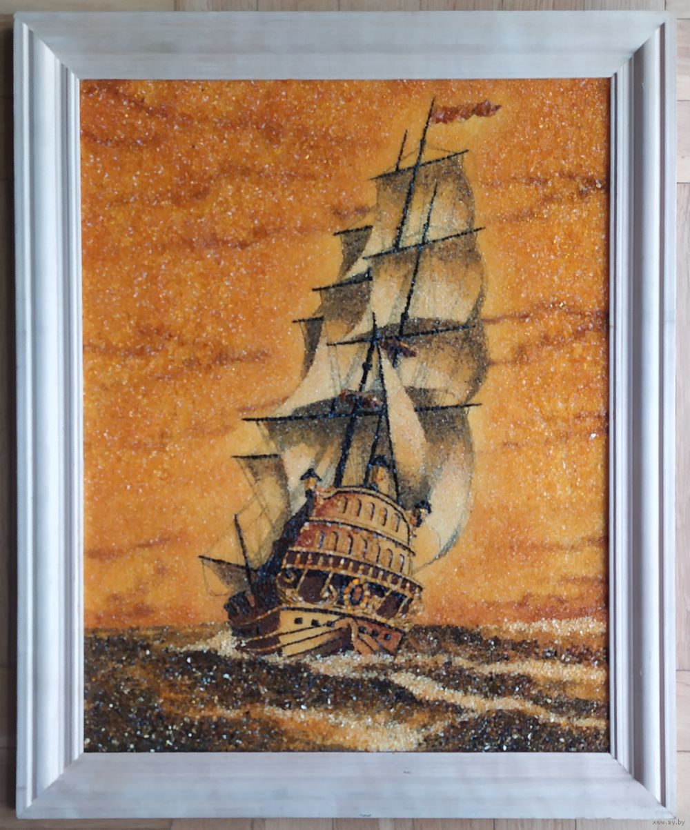 Картина из натурального янтаря, ручная работа, Калининградская обл, РФ. В деревянной рамке. Новая - не использовалась, т.е. не вывешивалась на стену, что видно по оборотной стороне картины. Фото - реальные. Размер по наружной стороне деревянной рамы 45 на 55 см ( высота х ширина), ширина деревянной рамы - 4,5 см.