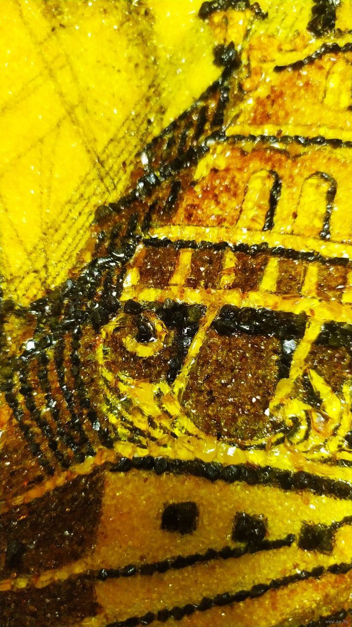 Художественная аппликация из камней и мелких частиц балтийского янтаря - чудодейственного натурального камня, называемого в народе "даром солнца". Природный минерал янтарь является отвердевший за десятки тысяч лет смолой хвойных деревьев. На формирование янтаря природа тратит более 40 тысячелетий. Энергия этого камня облагораживает интерьер, а предметы декора с янтарем создают в нем места силы, отдыха и притяжения. За 40-150 тысячелетий своего формирования янтарь вобрал в себя энергию природных стихий, земли, воды и солнца. Этот камень называют "даром солнца", от природы этот камень наделен лечебными свойствами, поэтому современному человеку, который часто испытывает усталость, он необходим. Янтарная картина привнесет свет в помещение и наполнит дом особой энергетикой, настраивая на релаксацию и даря заряд бодрости. Камни и янтарные элементы наклеены и дополнительно закреплены посредством защитных прозрачных слоев лака. Картина обрамлена в деревянную раму, оттенок которой подчеркивает цветовую палитру изображения. Эксклюзивная авторская работа, картина янтарная - универсальный вариант подарка для родственника, бизнес-партнера, руководителя, коллеги на Рождество, Свадьбу, День рождения, Юбилей, личный или общий праздник.