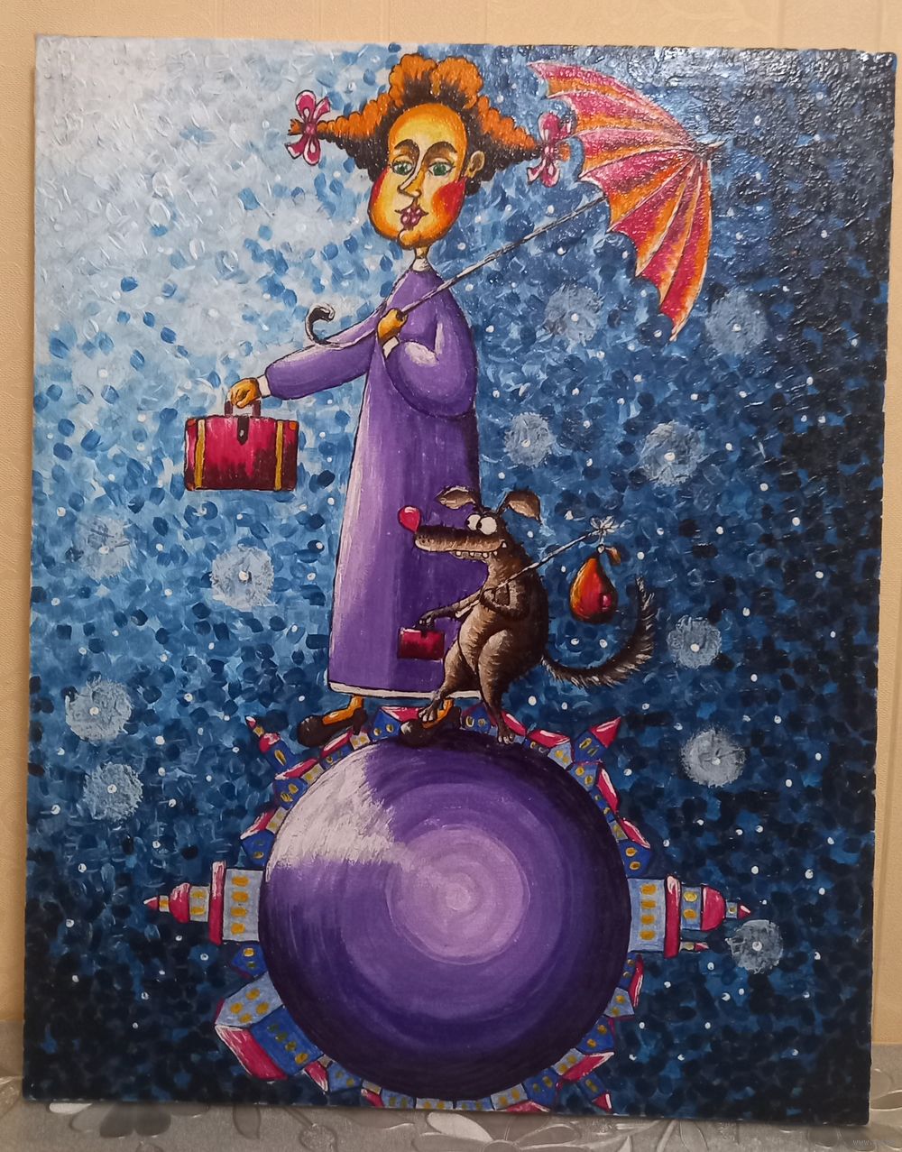 Авторская работа Леся и Жужа едут на дачу. 40×50см. Состояние хорошее написана на холсте масляными красками , холст натянут на подрамник очень яркая и красочная графика смотрите все мои лоты