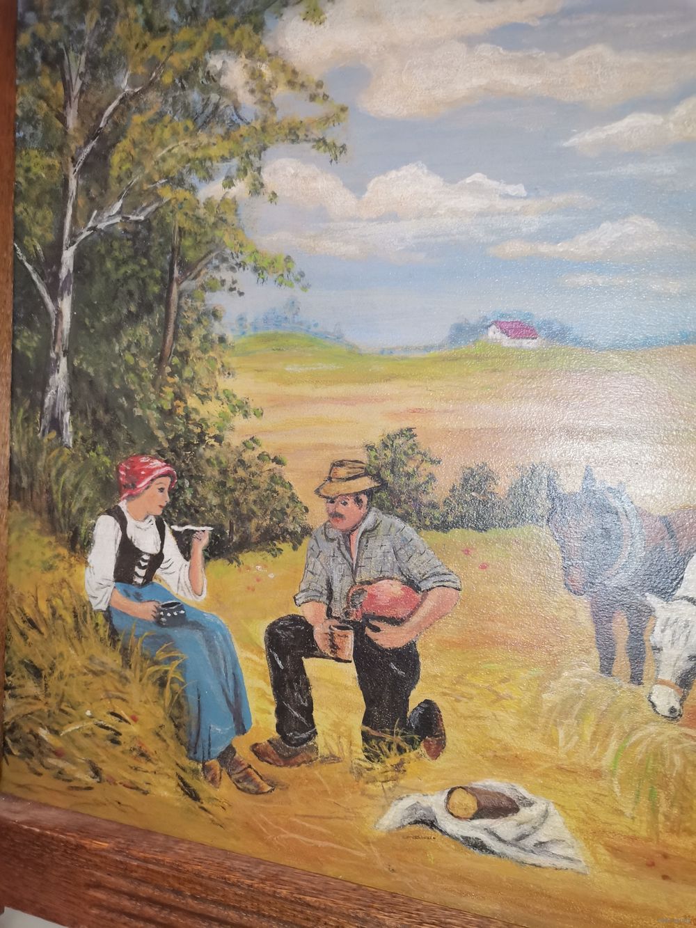 Картина изображает сцену отдыха крестьян во время сбора урожая.