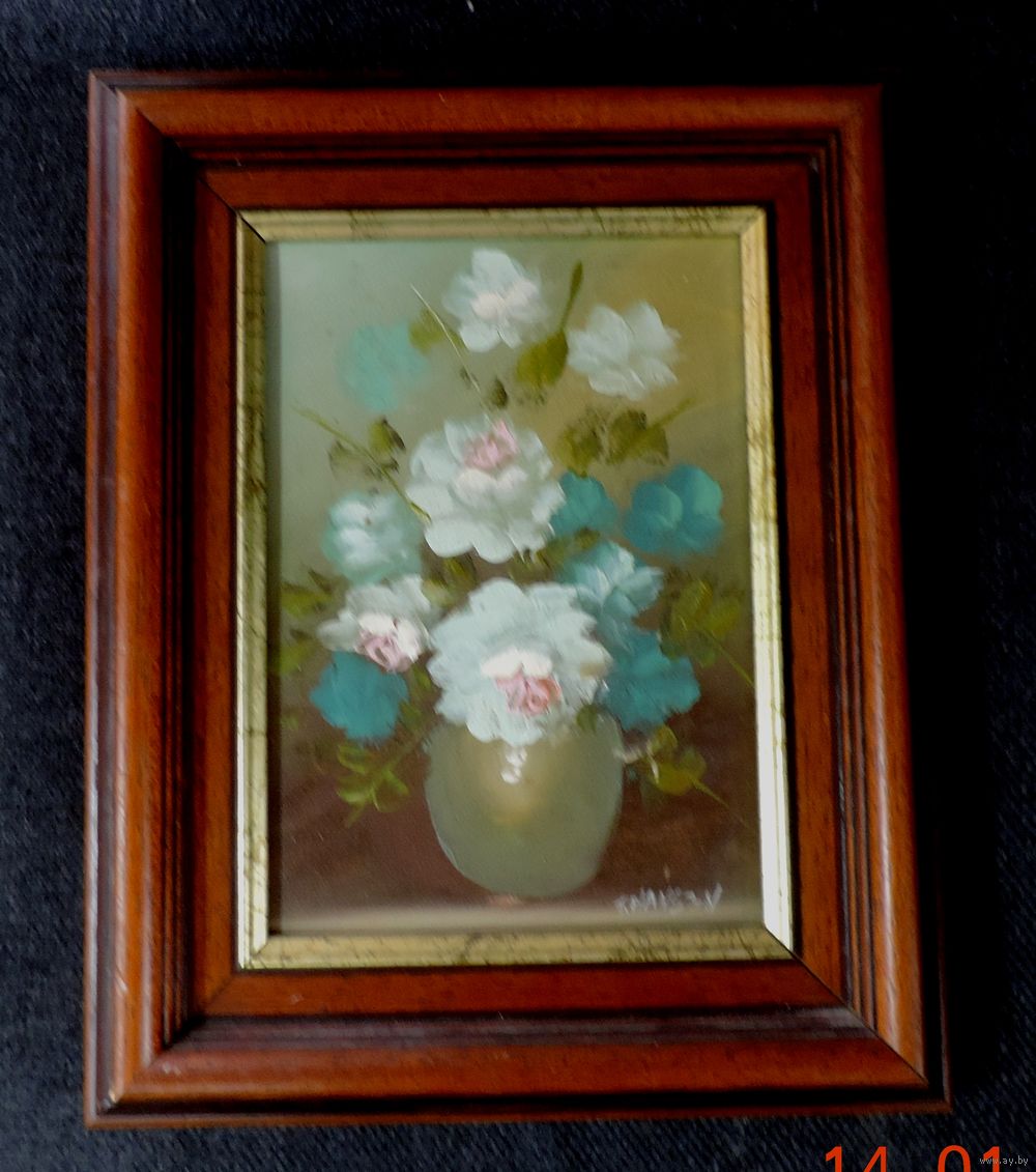 Картина маслом на холсте "Цветы". Размер с багетом 20-25 см.