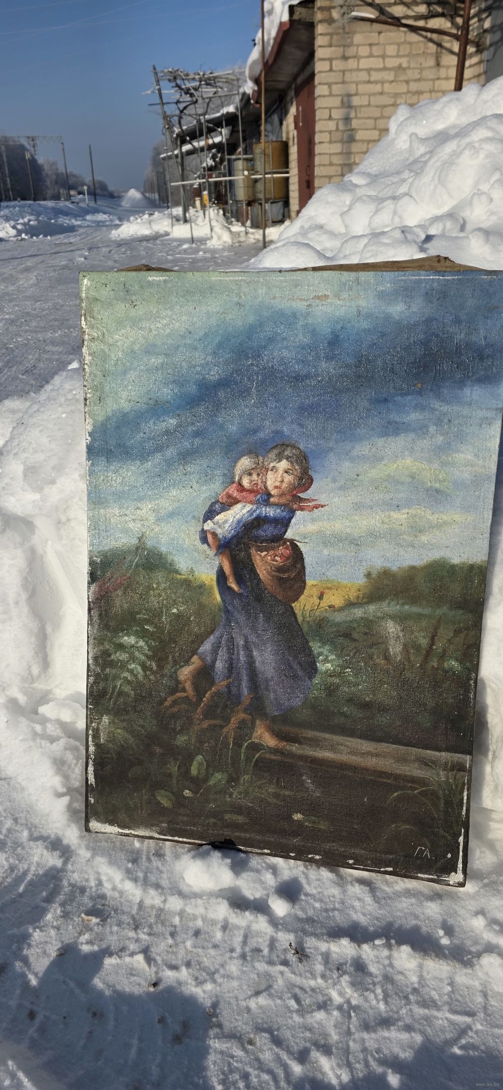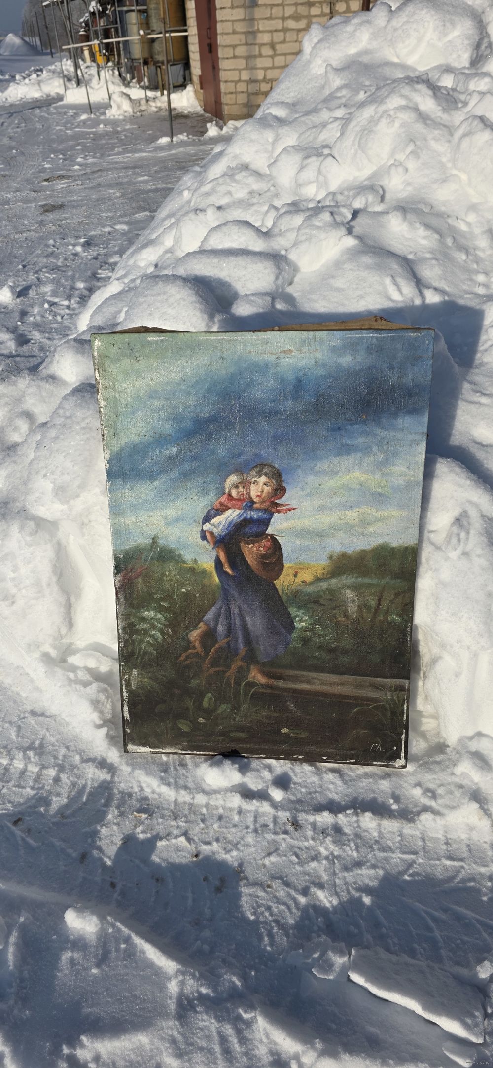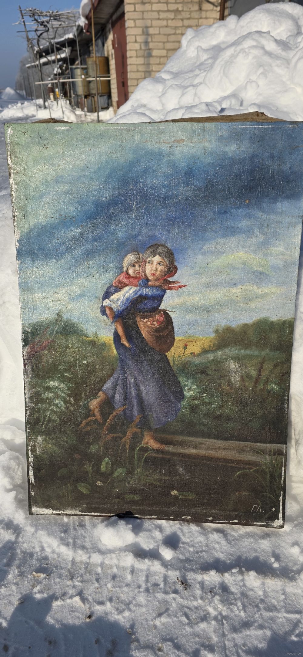 Картина маслом на холсте старая Дети бегут от грозы. 510мм *740мм Смотрите другие мои объявления. Высылаю почтой ЕВРОПОЧТОЙ