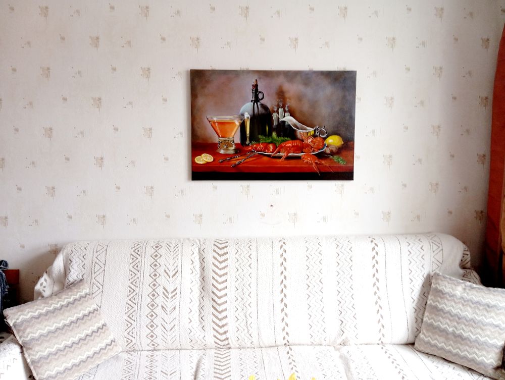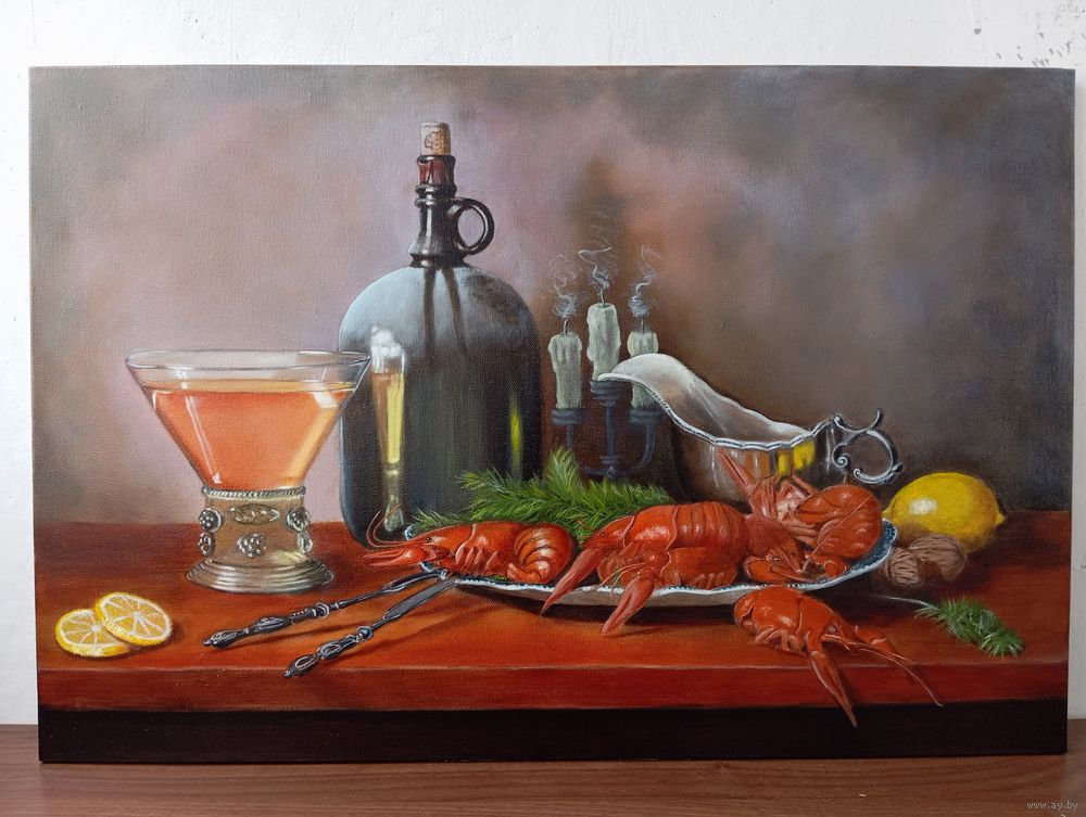 Картина маслом. Холст на подрамнике 60*90см, торцы прокрашены, покрыта двумя слоями полуглянцевого лака. Написана по МК Ольги Базановой, которая не против продажи картин учениками.Референс создан ИИ. Идеально полойдёт для оформления ресторана, кафе, бара, подарок директору, начальнику...Готова доставить в Минск, Молодечно,Заславль.