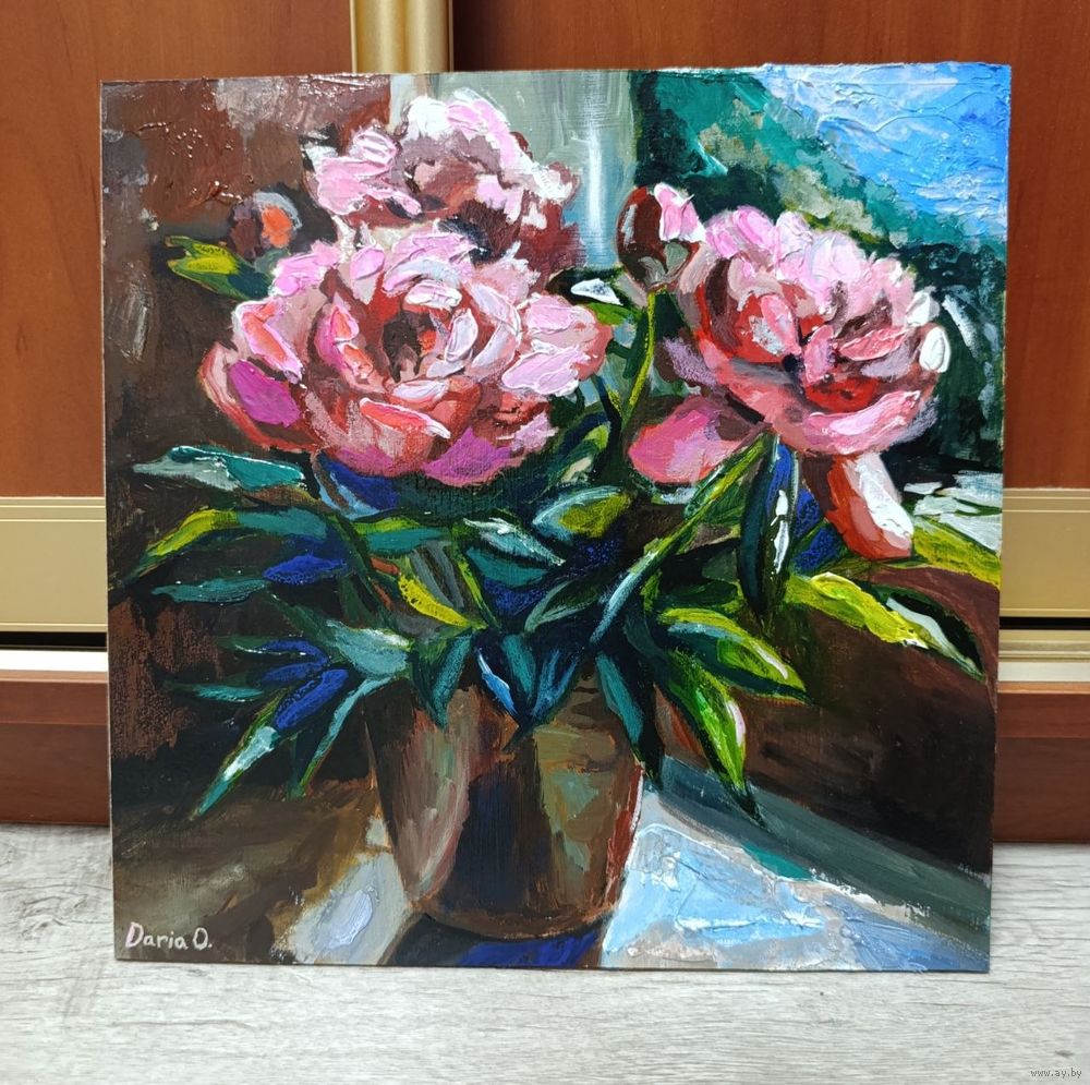 Красочные цветы. 30x30, масло, оргалит, покрыт лаком