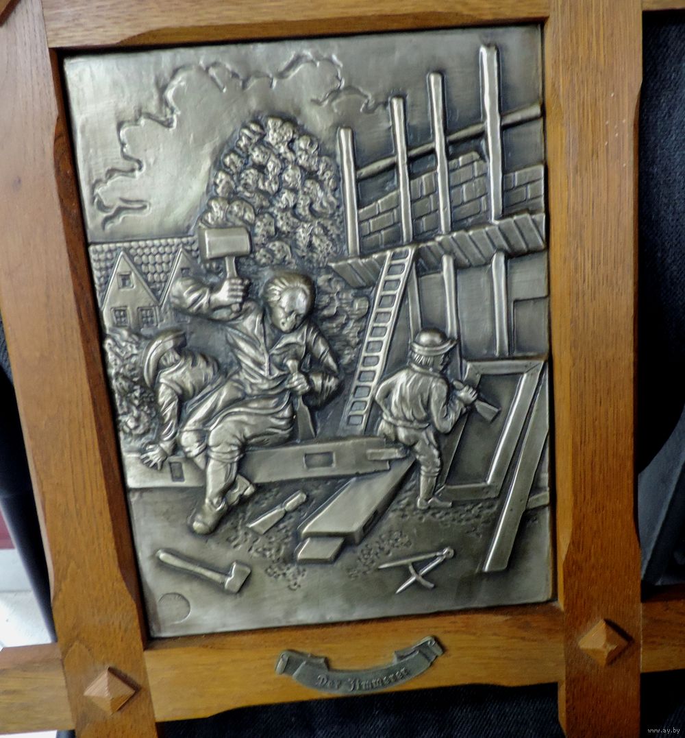 Картина на металле. Чеканка. 70-е годы Германия. Размер общий 43- 51 см.