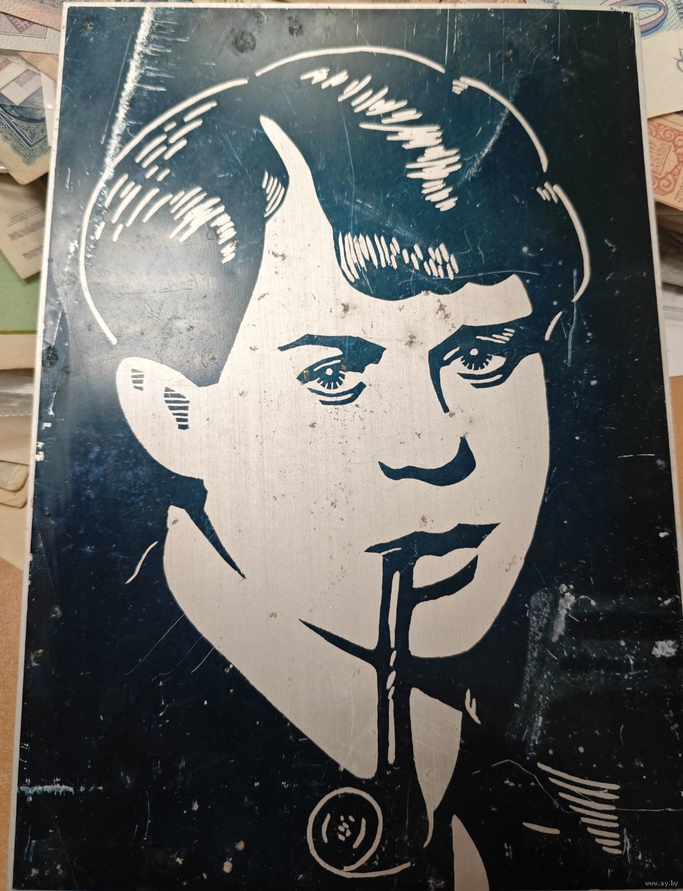 Картина на металле. Есенин. 27х19 см. Старенькая