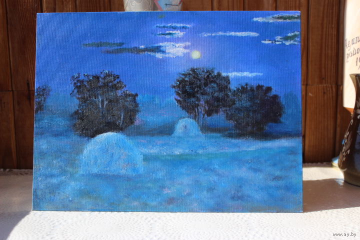 Картина "Ночь на сенокосе",холст на картоне. Р.30.0х4.0 2026 г.