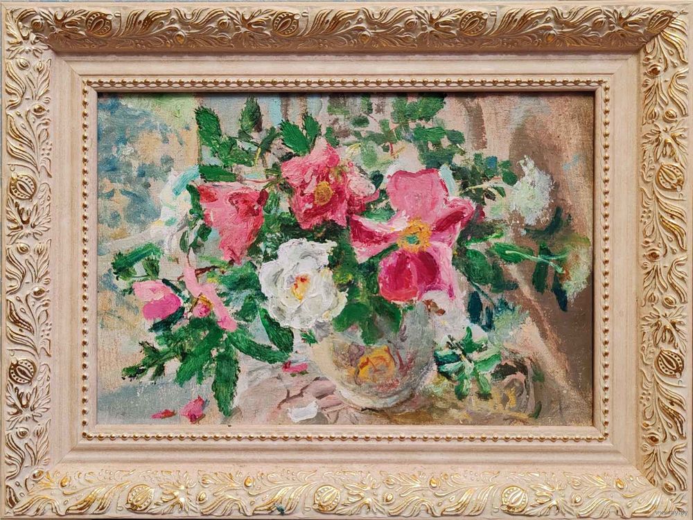 Картина О. Александров "Дикие розы", 25х36см. х.м. 2024г.