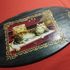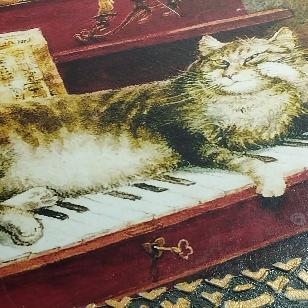 декоративный настенный поднос или панно с изображением кота на пианино, выполненным в стиле работ художника Владимира Румянцева