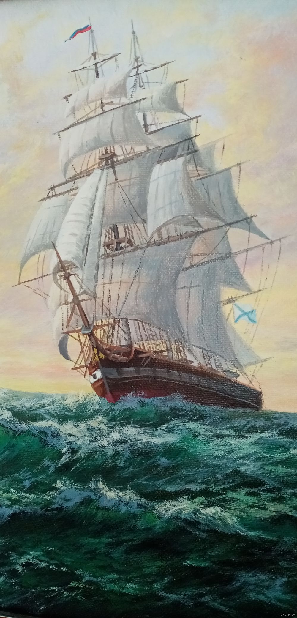 Картина парусник. Масло. Холст. Рамка. 40 на 30