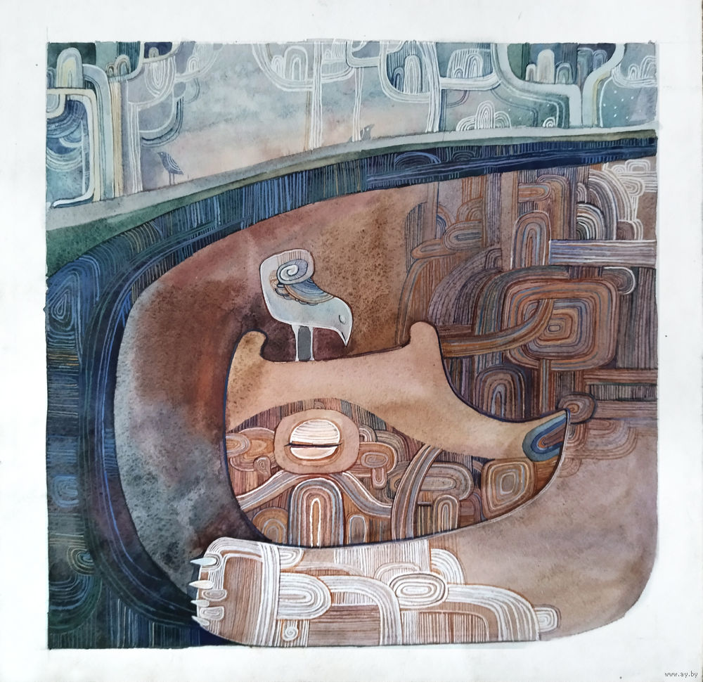 Декоративная графическая работа. Бумага, акварель; 40*40 см.