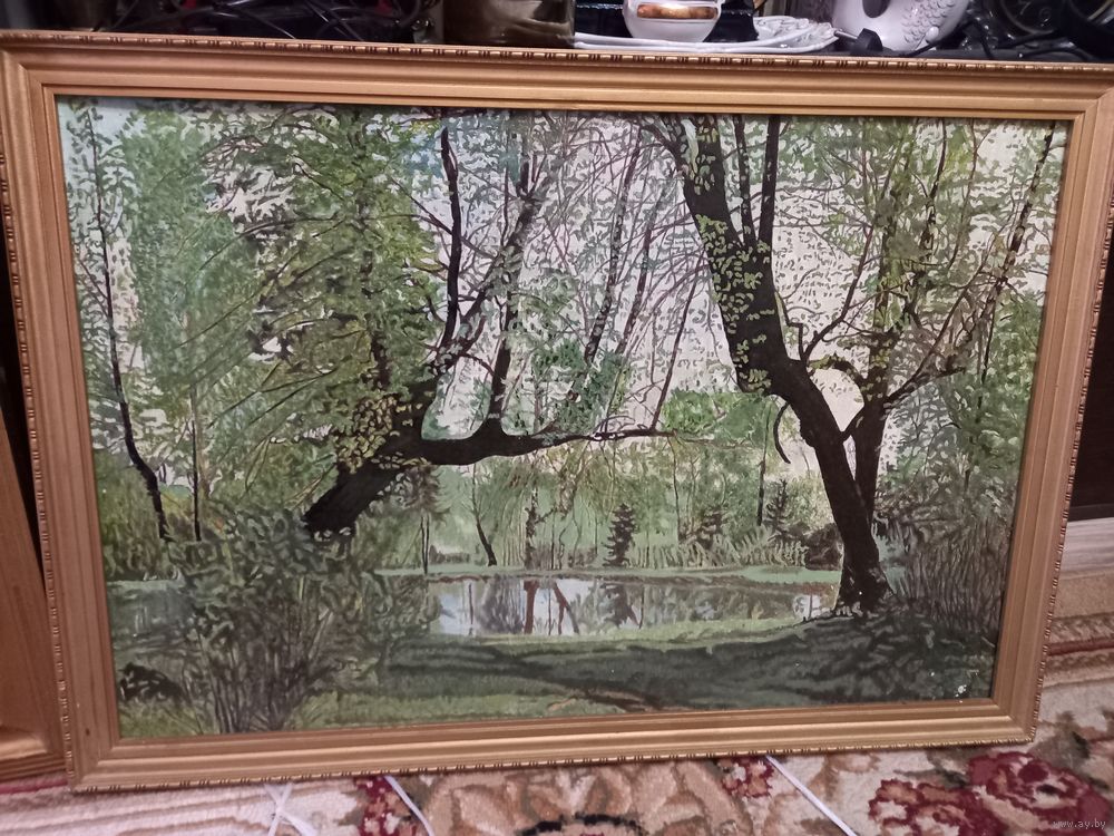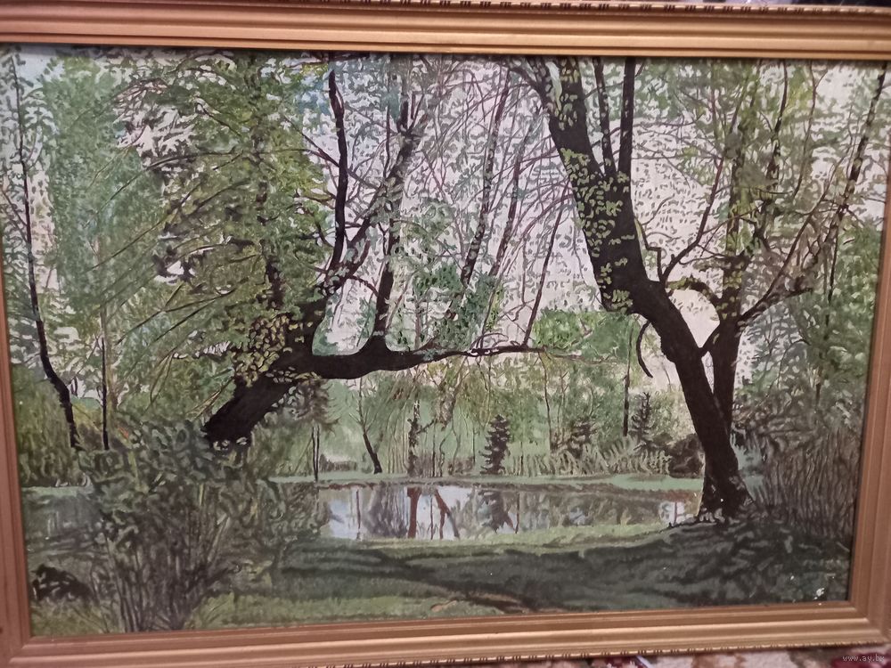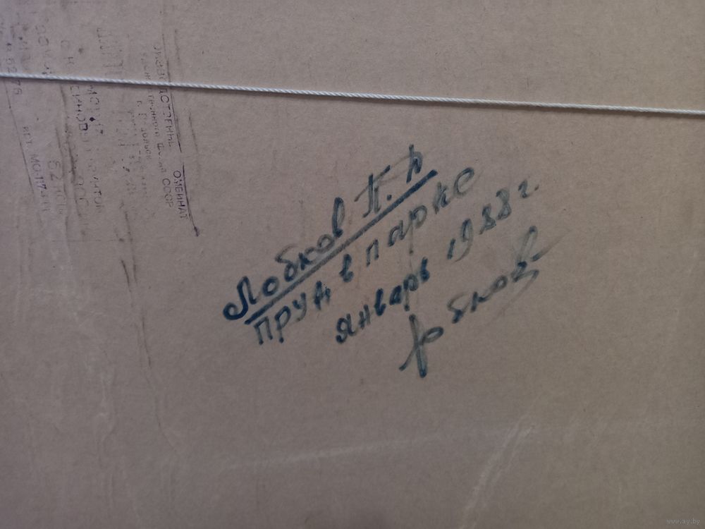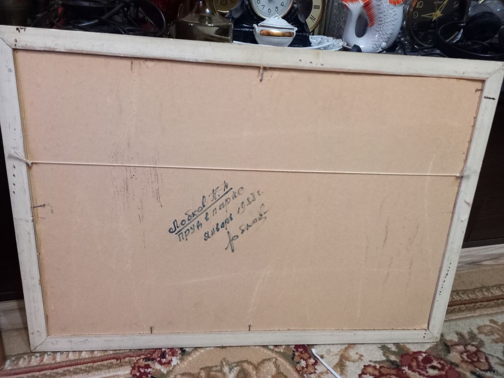 Картина "Пруд в парке", масло фанера Лобков П.Д 1988 г. разумный торг
