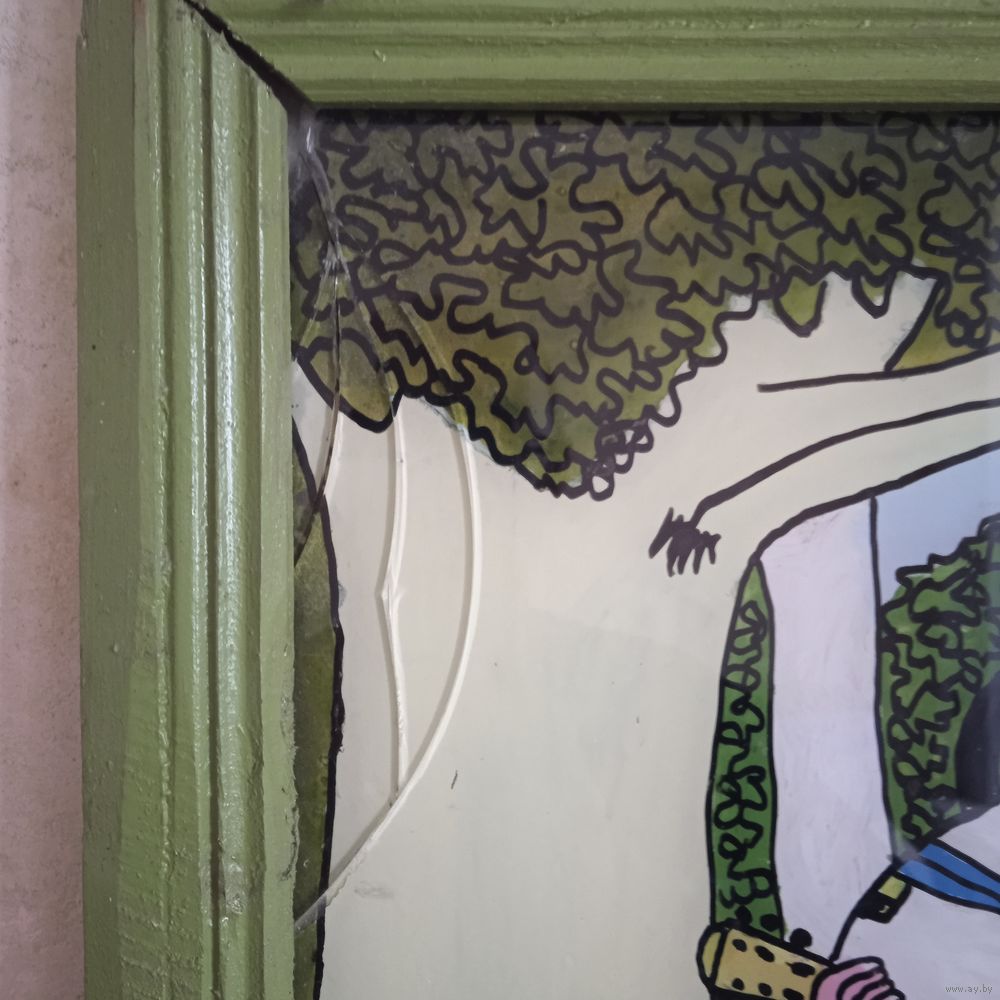 | Состояние на фото. В левом верхнем углу трещины (фото №4). Размер стекла около 60х50 см. | |